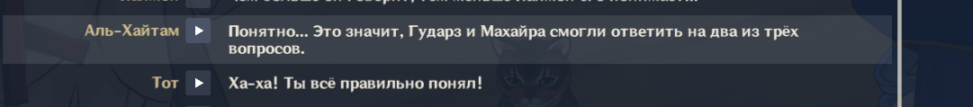 >>5922979 Я понял по-другому. Дешрет задал три загадки и кот сам не знает ответа на них. Кот просто "примерно почувствовал", что люди, которым он загадал загадки, правильно ответили, а какой ответ правильный знает Дешрет один.