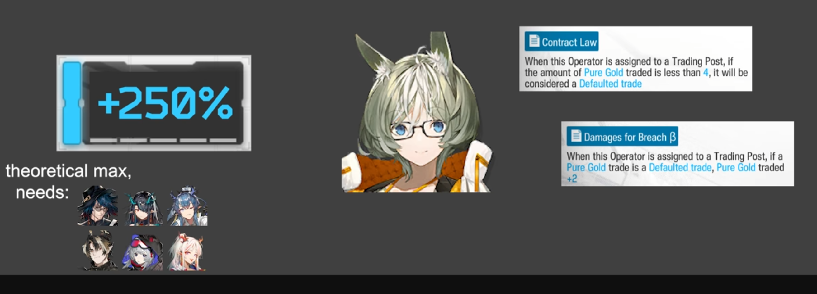 Кручу гарантию и в ней... Люсиния. Которая делает > Applies 8% Fragile effect to enemies that are not Elites or Leaders within range