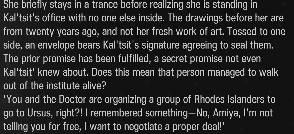 Дочитал ивент. Хотелось бы узнать, что там с Гретой сталось и всем этим делом и другими участниками команды Догадываюсь конечно, но всё же. Я правильно понимаю, что Люсиан теперь бессмертный? Можно ждать в Эндфилде чтобы узнать, что он там наворотит и не поедет ли ещё больше, чем его предшественник.
