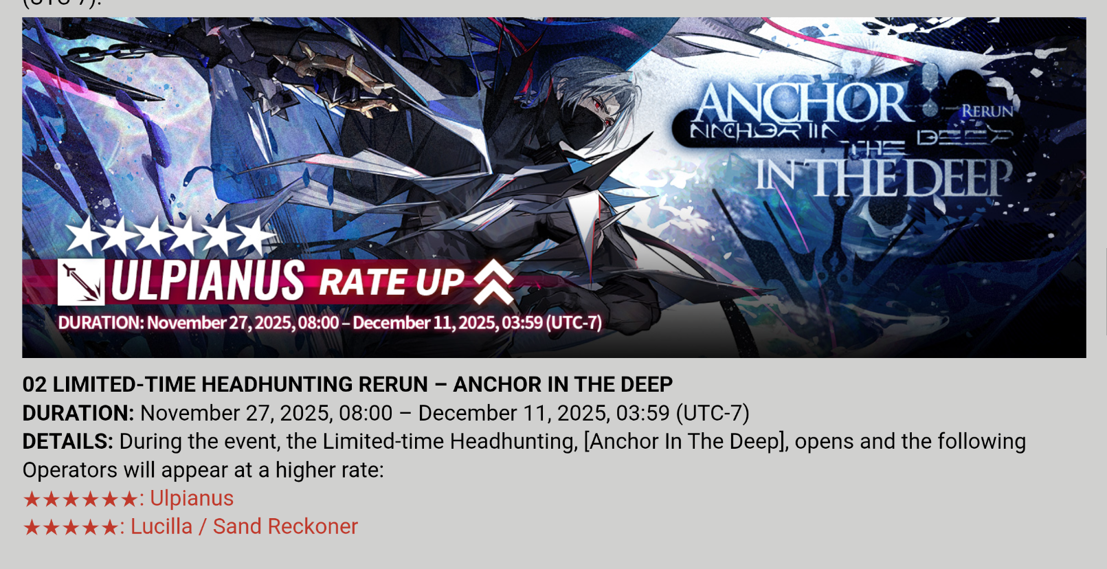 C 13.11.2025 по 27.11.2025 идет ивент с альтер Фантомом с соответствующим баннером, в котором можно получить его 6★ альтер версию Трагодию и 5★ скайрейнджера Типпи, а также бесплатную подсосисочную кошку мисс Кристин.
