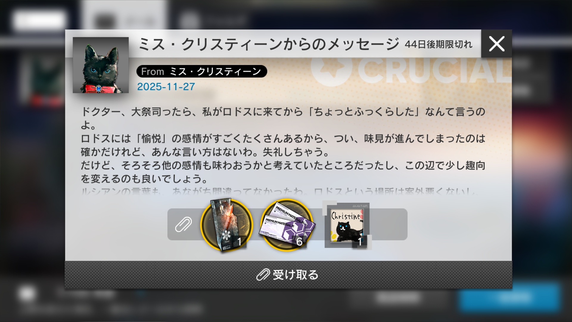 После эвента понял, что самый сильный опер Люциан - оправдано лором, силы у него теперь правда имба, ещё и кошак имбовый под боком. Наконец хорошо рассказали абилки Люциана, Кристины и их связь. Всегда приятно это в основном сюжете.