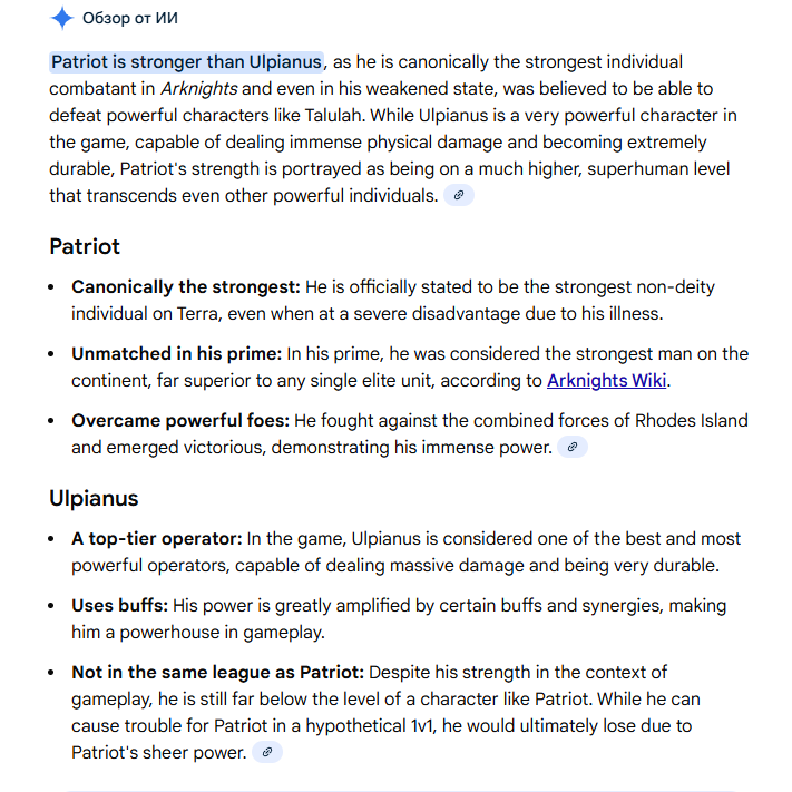 Кто сильнее? Патриот в прайме или Ульпианус? Патриот, вроде, обладает йоба-искусствами сарказмов, аннигилирующими всех и вся без шанса(он победил ту варп залупу) + он должен быть сильнее Фростновы, а Фростнова на расслабоне морозила города Урсуса по щелчку пальцев. Ульпианус же живет под водой и выдерживает невероятное давление + у него якорь, а якорь сильнее алебарды для файта в хтх. Патриот много чего танчит — хай-тир майнд-контроль, то, до чего сиборны три месяца адаптировались, плюс одной рукой под кучей дебаффов пиздит монстра. Ульпианус вроде такого не показывал