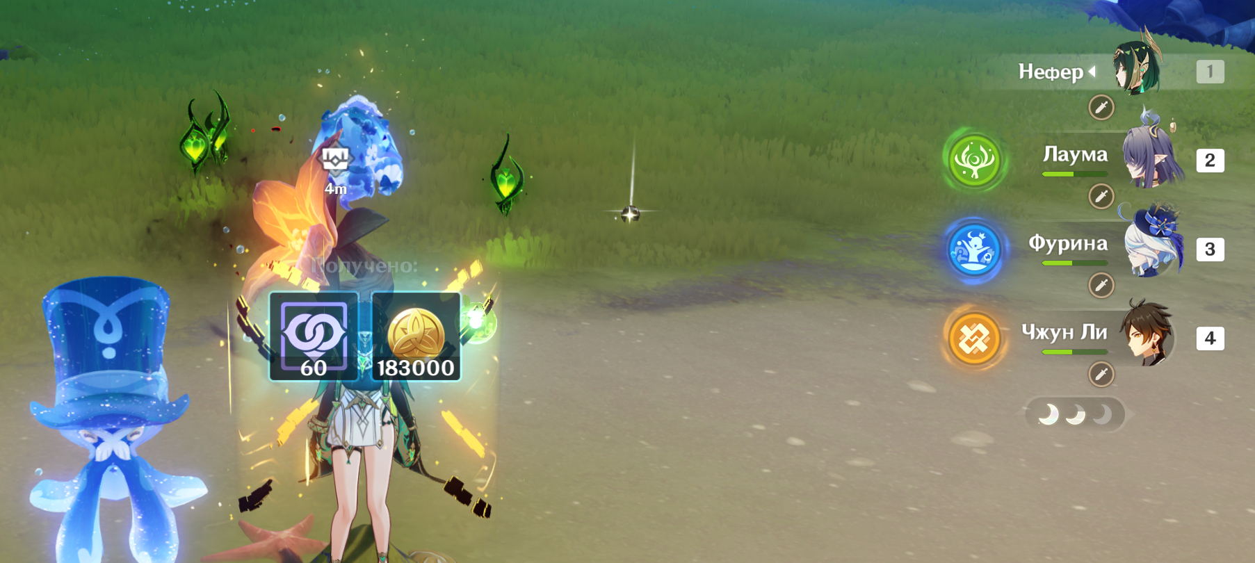 Лунное знамение - Высшее сияние: её взрыв стихии Точный водоохладитель" получает усиление: Охладительный утёнок выпускает водяные снаряды через более короткие интервалы и наносит Гидро урон по большей площади.