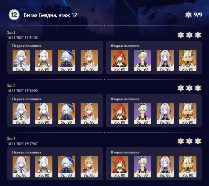 рассмотрим первую половину: 12-1 нужно дендро и гидро (там можно воду раздуть через анемо, но это для задротов совсем) либо мегаурон 12-2 нужны луновички или изголяться 20 секунд физой бить 12-3 нужно два луновичка или мегаурон