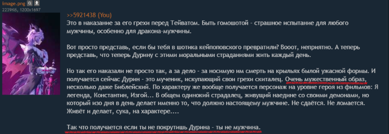 >>5918896 → > Кому нахуй нужно прохождение контента двухлетней давности, да ещё и с шизопетросянскими комментариями. Лучше вообще без постов в треде, чем твой сёр в него. Основная причина проблем гача раздела, да и вообще гач - вот такой контингент. Не занюхал за 5 минут? Всё ууу. Не выбил за 4 крутки?? Фууу анлакир. Как не стал крутить каждую дуру с оверсайз бубами типа Лаумы? Ну всё, паймон. Чел сидит получает удовольствие от игры? НУ КАК ТАК НАДА НЮХАТЬ ДЫРКУ НА 1356 ЗВЁЗД А ЕСЛИ БУТЫЛКУ НЕ ПОЛУЧИЛ И ПЛАТИНУ ТО ВООБЩЕ БУУУ