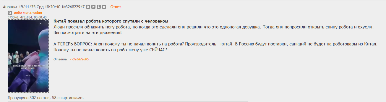 >>5924093 Да анон спрашивал по поводу сотого лвла своим вайфушкам и почему-то просил представить тредовичков себя в роли его гаремных жён. Поехавший какой-то.