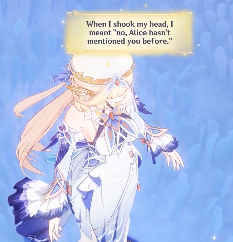 Ну что блядь за нытьё малолетних соевых нитакусиков. Как участие в фатуйских планах отменяет то что ты, дурында, подружилась с Розалиной, Марионеткой, Арлекино пока Тсаритса с Пьерро крупными делами заняты? Как запросы на "исследование куувяки" от Доктора обнуляют искреннее теплое общение с вышеупомянутыми? Сравнивает она с добоебами-сектантами своими.