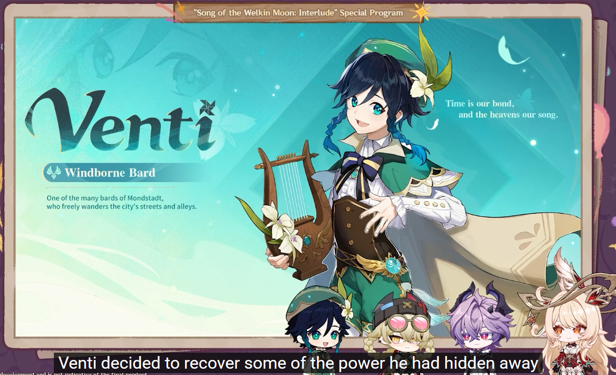 Я так и не понял где у венти какой разный геймплей. На стриме показали как он оба раза давал ульт и срыгивал в карман. Один раз после него венти тыкал лкм, второй мона.