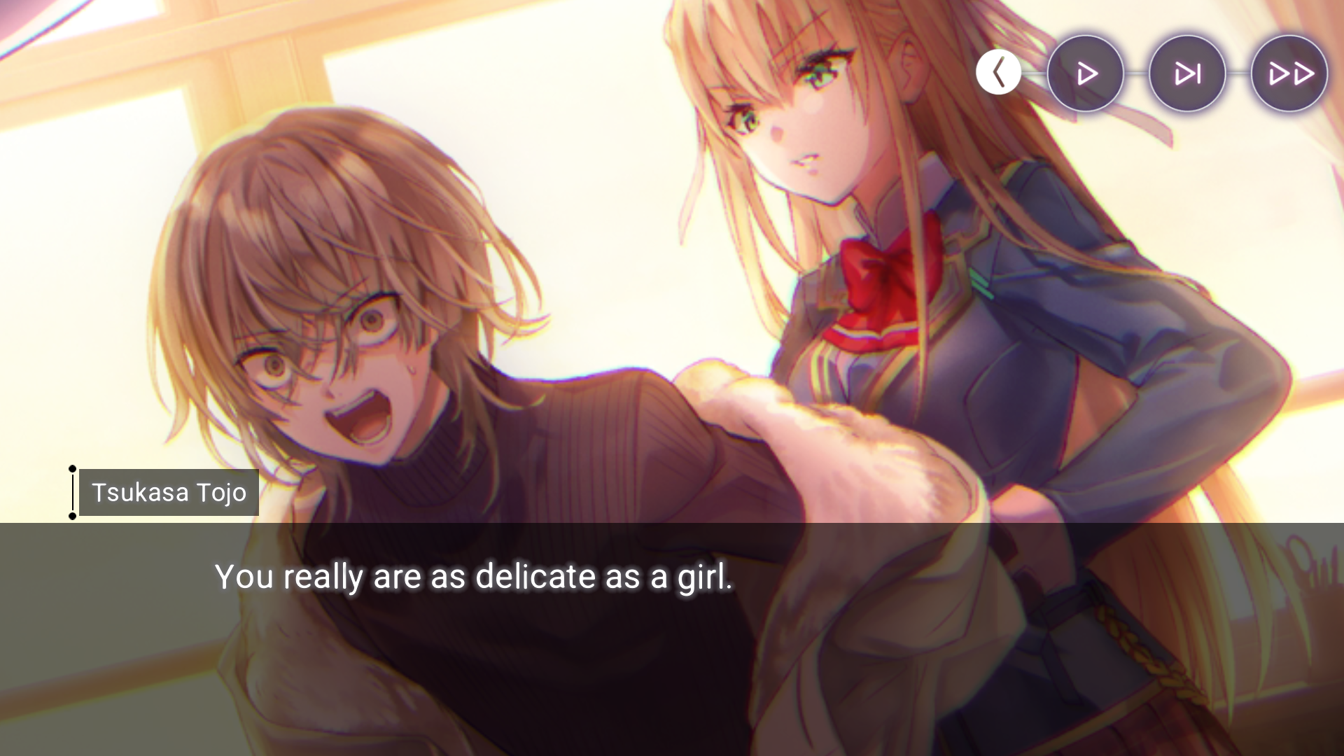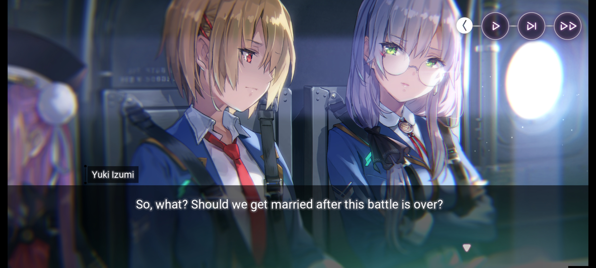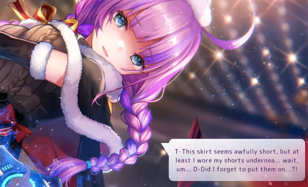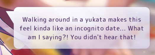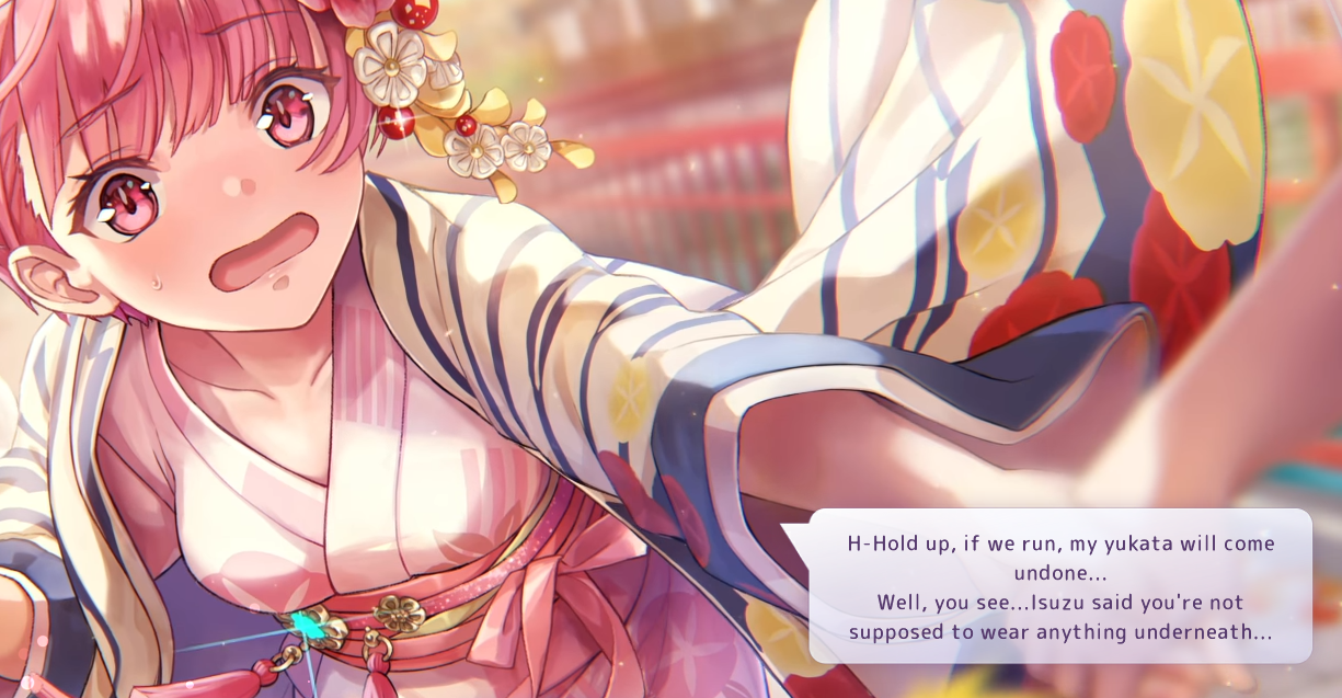 >>6029215 Форма ее пре-фронтовой бытности, отсылающая к Heaven's Door. Но игровой костюмчик примечателен даже не этим. Обычно при выставлении на главный экран анимированной мемории реплики персонажа представляют собой или мысли вслух, или обращение к абстрактному слушателю. А тут Юри адресно извиняется перед Хинатой (предварительно ухватив того за одежду, судя по всему).