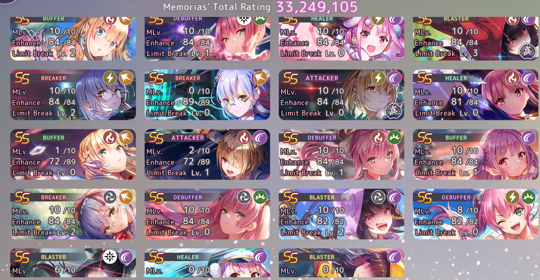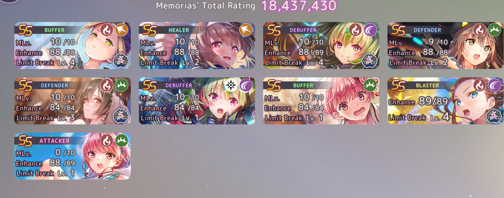 Первый выгул дивы. Отказаться от Тамы не получилось, майнд ай и обычный скилл атак ап помимо нее накладывать некому. Потом надо будет 140/35 тоже сделать. Забавная СА, инвуль Аой тут вообще не спасает, нужен деф ап и/или атк даун.