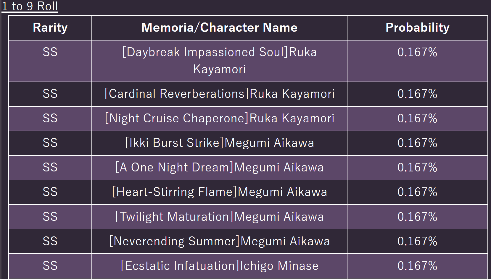 Из этого билетного автомата будут мемории только те кому мастер скиллы дали, то есть Рука1/2/3 Мегуми1/2/3/4/5 Ичиго1/2 и все в такой логике. Овари да.