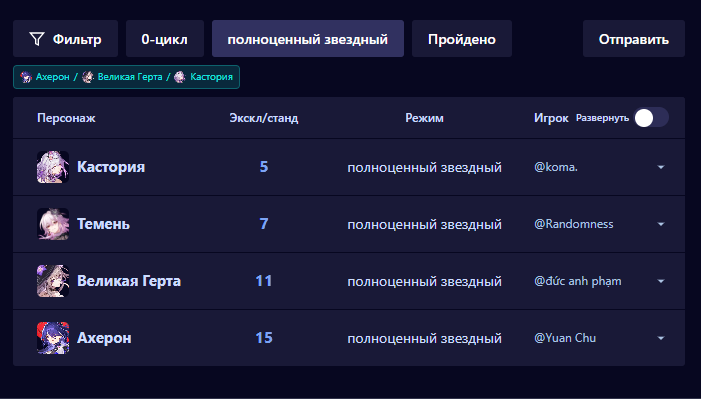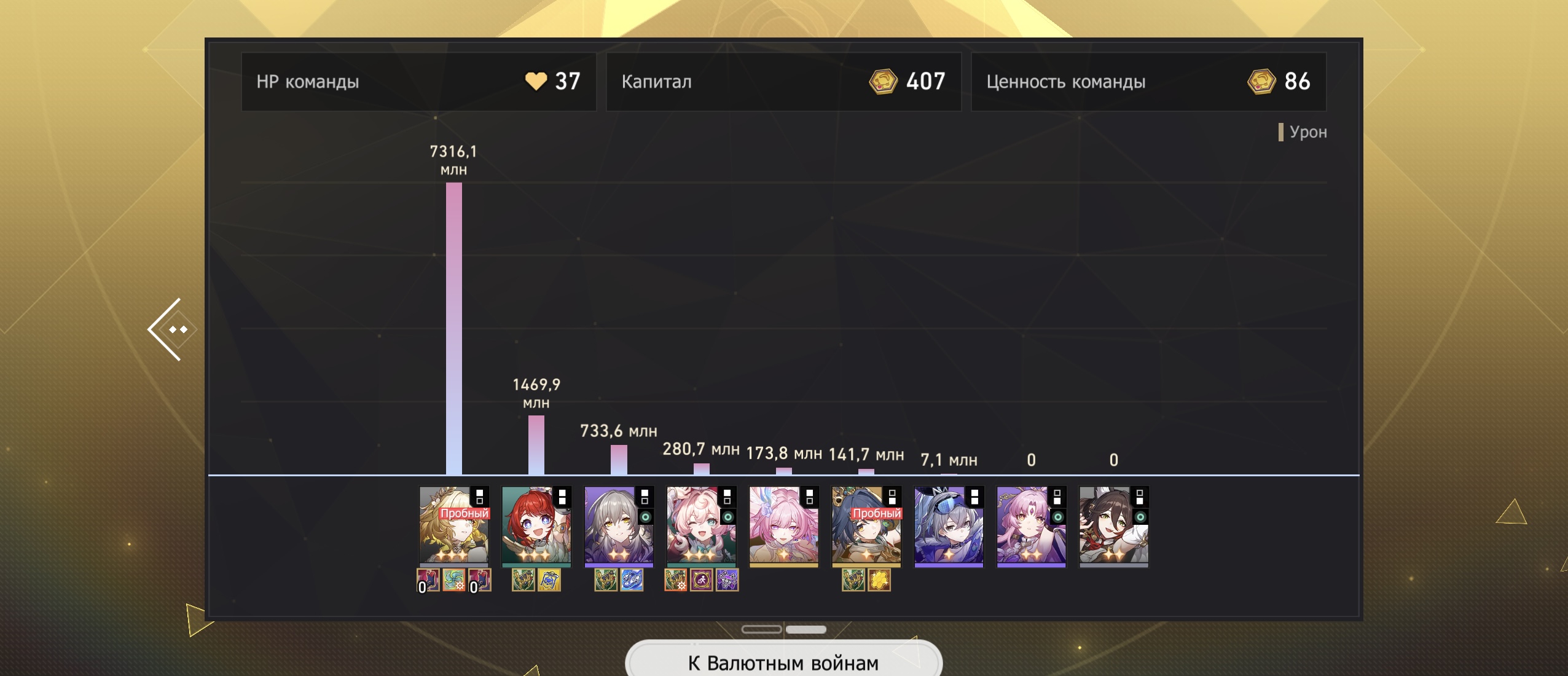 То есть по итогу, просто существует каста игроков, которым необходимо катиться на горбу подкрученного контента, вне зависимости от паверкрипа. Он разумеется есть, как и везде, но по моим наблюдениям он слабее чем в зюзе и г. Что то в духе плавного ~20% в год. Как раз типичная 1 конста на ~20% как правило ставит древнюю команду (которая и так закрывает) на уровень дпсов схожий с новинкой. Такого чтобы даже е6 был инвалидом тут нет. Е0 старичок в хорошей сборке закроет за 2-4 цикла из 10. Новинка за 1-2 из 10. В любом случае пройдено уверенно. Старички ещё при этом иногда получают подгоны команд/баффы/фришные эйдолоны, а не остаются навсегда забытыми чариками для е6с5 магнатов.