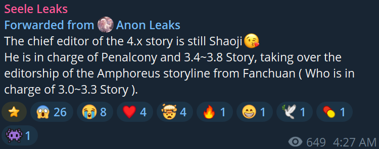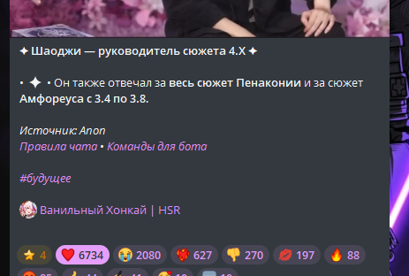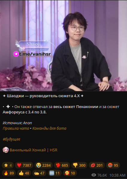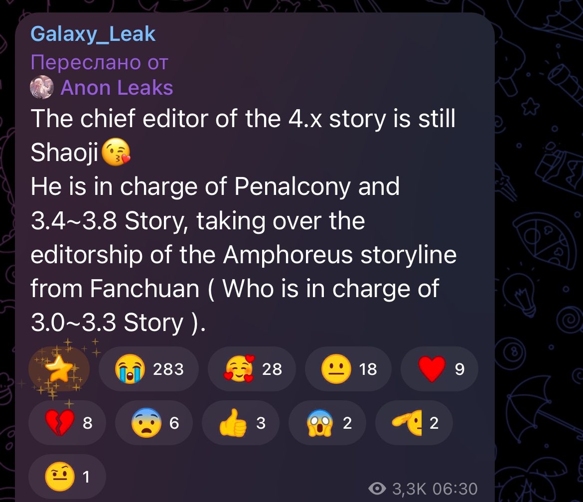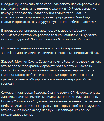 Амфореус является законченным ХСР в микрокосме (потому что вне его он естественно закончиться или испытать бесповоротные изменения никогда не сможет, надо продолжаться работать, а не выкатывать титры и еосаться), он использует все наработки плавно пододвигающие к этому сюжету с 1.0, его презентует Шаоджи с подписью "сценарист серии хонкай", он строится вокруг написанного им персонажа и отсылается к его прошлым работам. Да сука, просто под конец позвали подредактировать. Какие же тут и в телегах что они скролят долбоебы сидят, я не могу.