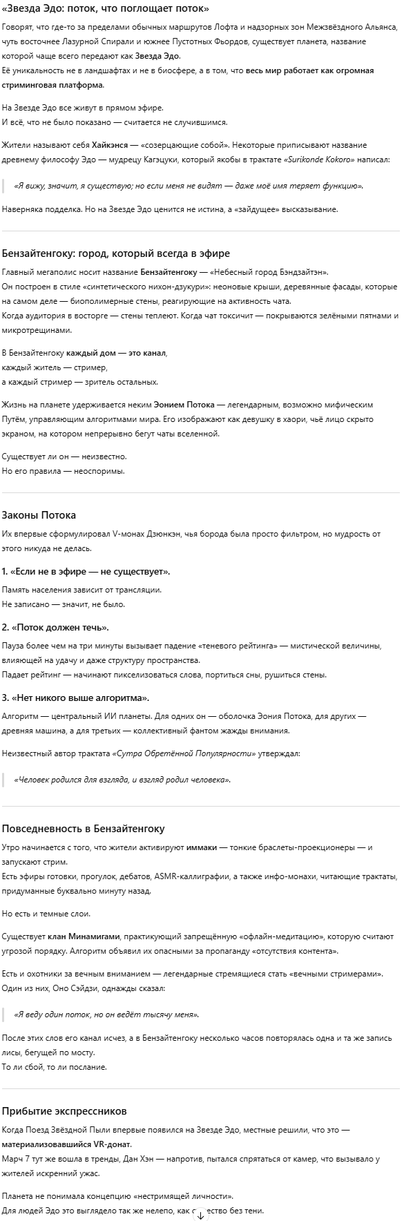 Подумалось, что Амфореус в первых патчах, когда он заявлялся как отдельная планета, ощущался куда лучше, чем когда всплыло, что он скиперт и вообще сон механической собаки. => будет грустно, если на Эдо вместо обычных локаций тоже будут какие-то кибермультяшные...