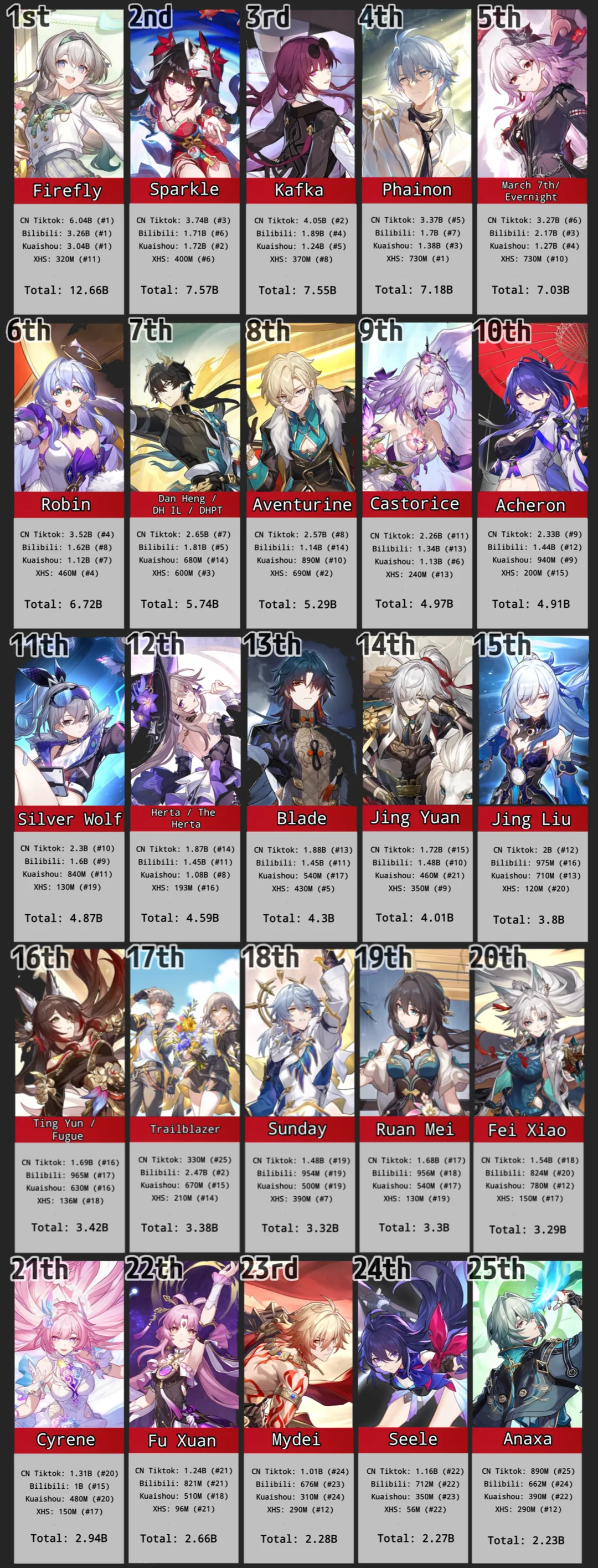 Почему китайцы так не любят Лебедь? Один из самых охуенных персонажей игры, при этом Кафка в топ 3 до сих пор. Или у них если перс не фигурирует рядом с гг это не считается уже?
