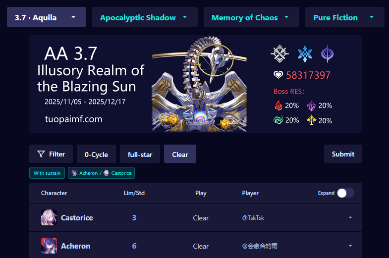 >>5940563 Давай. Самый сложный эндгейм в игре, проходится е0 Ахерон которой почти 2 года. Босс с электро резистом и механиками/уязвимостями шиллящими касторию с гиациной, типа дотов и прочего.