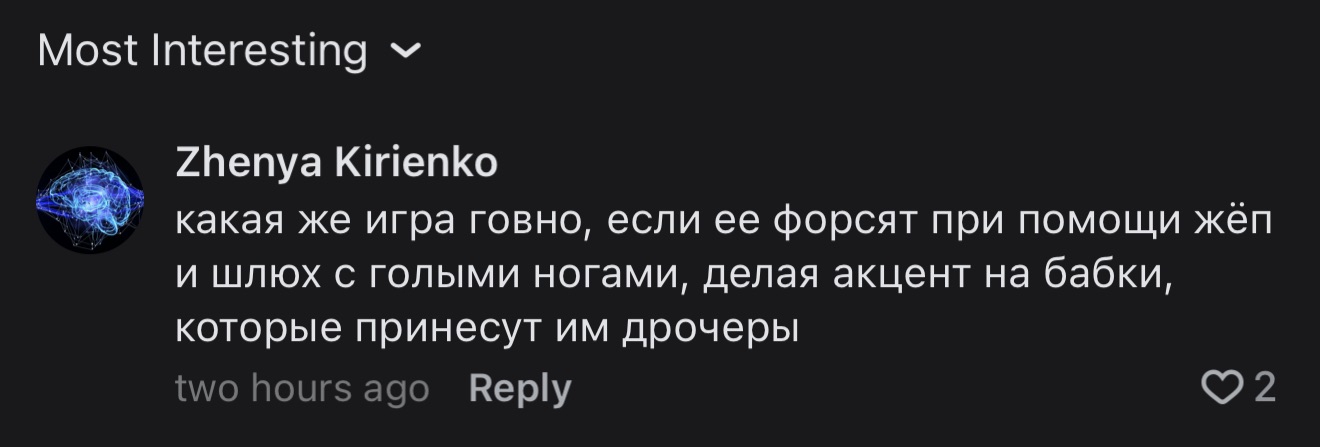 Жду эндфилд неиронично. Удаляю Г, если будет продолжаться тот пиздец что сейчас, и всё. Весь донат пойдет в ушки. Да, там тоже есть рсп. Но там они есть изначально, а тут нас специально кормят куколдинг-контентом и специально не дают жен. Напоминаю что в ушках у гг целых 4 (четыре) официальных жены, с которыми он трахался. И одну их них гг убил нахуй. Вот это базис, а местная агуша антибазис.