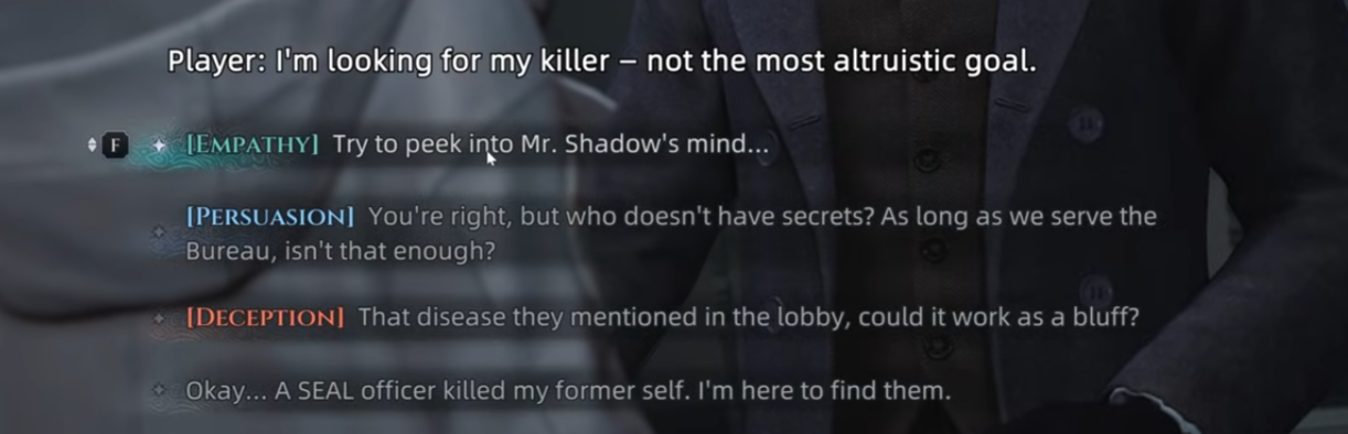 >>5936508 Ну там выбор прям отыгрыша гг. Или ты пиздишь бюро по сути или сразу карты выкладываешь. У нас просто все ведет к одному и тому же в итоге. Интересно конечно будет ли это влиять в итоге на что-то реально. Но в ролике гг потом Эмбер пиздит то же самое что выбрал в диалоге.