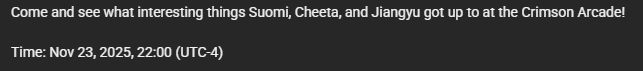 >Приходите и посмотрите, что интересного произошло с Суоми, Читой и Цзяньюй в Аркадном Зале Кримсон! Чё-то в голос с этого байта в описании видоса. Ну хотя да наверное это более интересно чем то что будет в игре