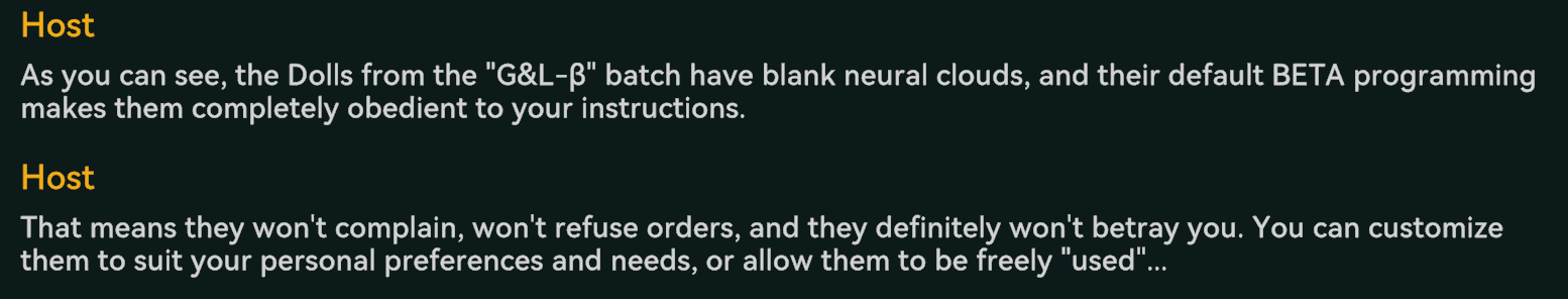 Я сюда изначально вкатывался на обещания что тяночки в дормах будут меня обнимать и ножками в экран тыкать, я терпел терпел, но понимаю что тут нихуя не будет, а если и будет то за дохуя доляров. Жаль конечно, мне нравится сама идея кукол, но реализация говно.