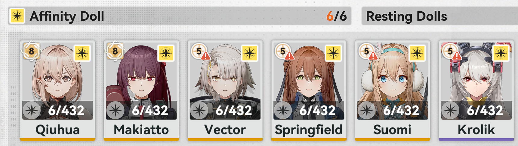 >>5960458 У окольцованных кукол можно теперь апнуть 9 левел. На твоём пике у тех у кого восклицательный знак - значит очков не получают. 6/432 это как раз опыт отношений, будет тебе до 9 левела на Ваву и Повариху набирать, или можешь вручную ресурсами апнуть.