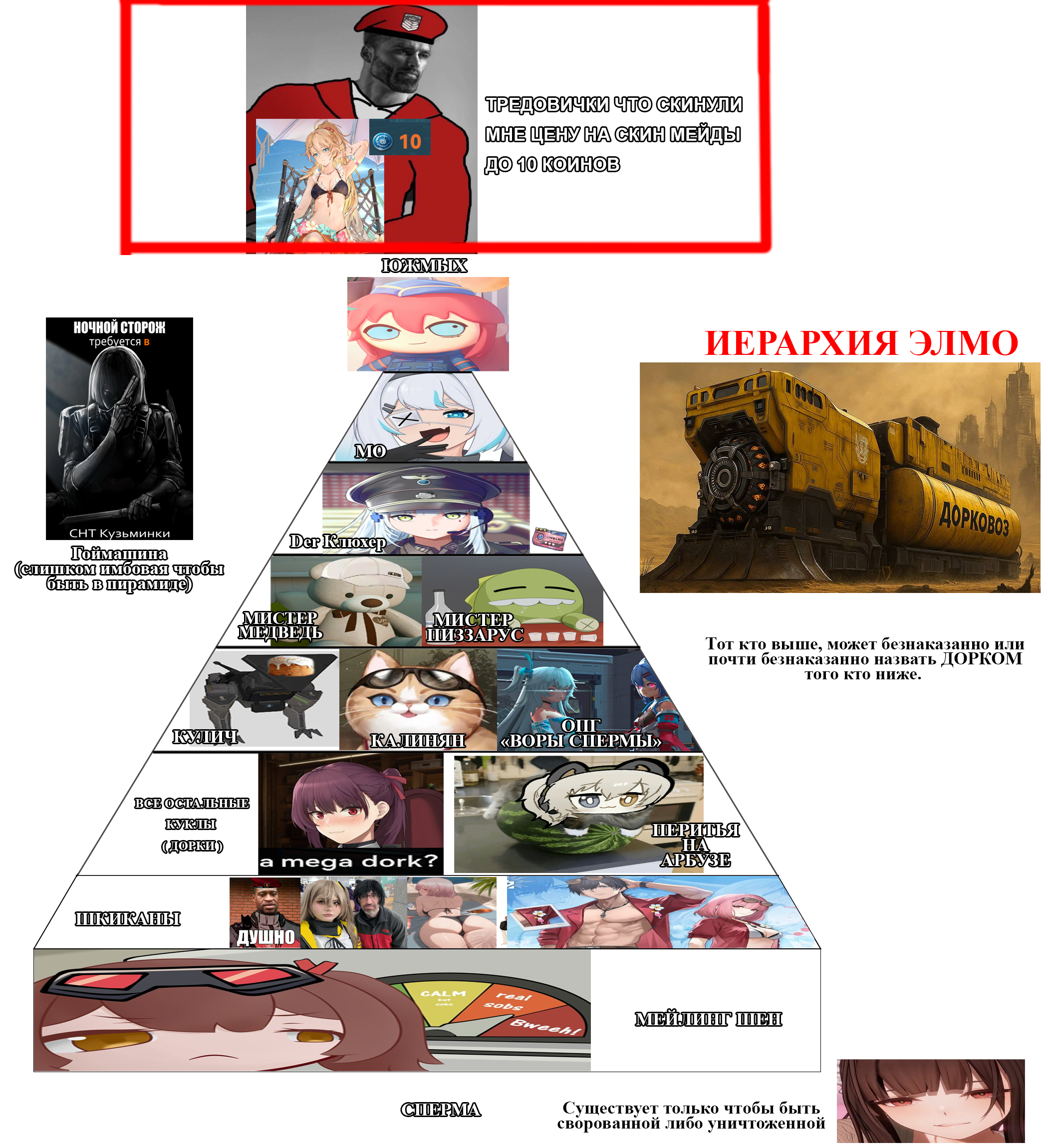 Уже завтра долгожданный большой дорм, а значит нужно заходить в хату полностью осведомлённым. Представляю вам единственную и 100% легитимную пирамиду иерархии на Элмо.