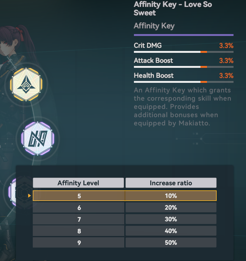 >>5961946 >Кроме разбора чипов там вроде есть ещё источники, но я их не видел ещё 38 в неделю из других магазинов. (платун и еженедельный босс) Афекшн ключи теперь могут вставляться только в свой отдельный слот. Афекшн ключи можно давать любым куклам, но если кукла носит свой афекшн ключ, то ключ даёт небольшую прибавку к своим полоскам (10%, больше если жена). Афекшн ключи не прокачиваются никак кроме отношений с куклами, они просто существуют. То есть на куклу с плохим афекшн ключом всё ещё можно повесить чужой ключ с критами и атакой, но он всегда будет давать ей ровно 3% к статам.