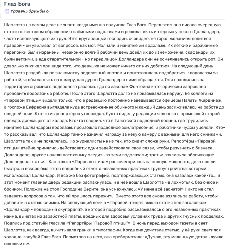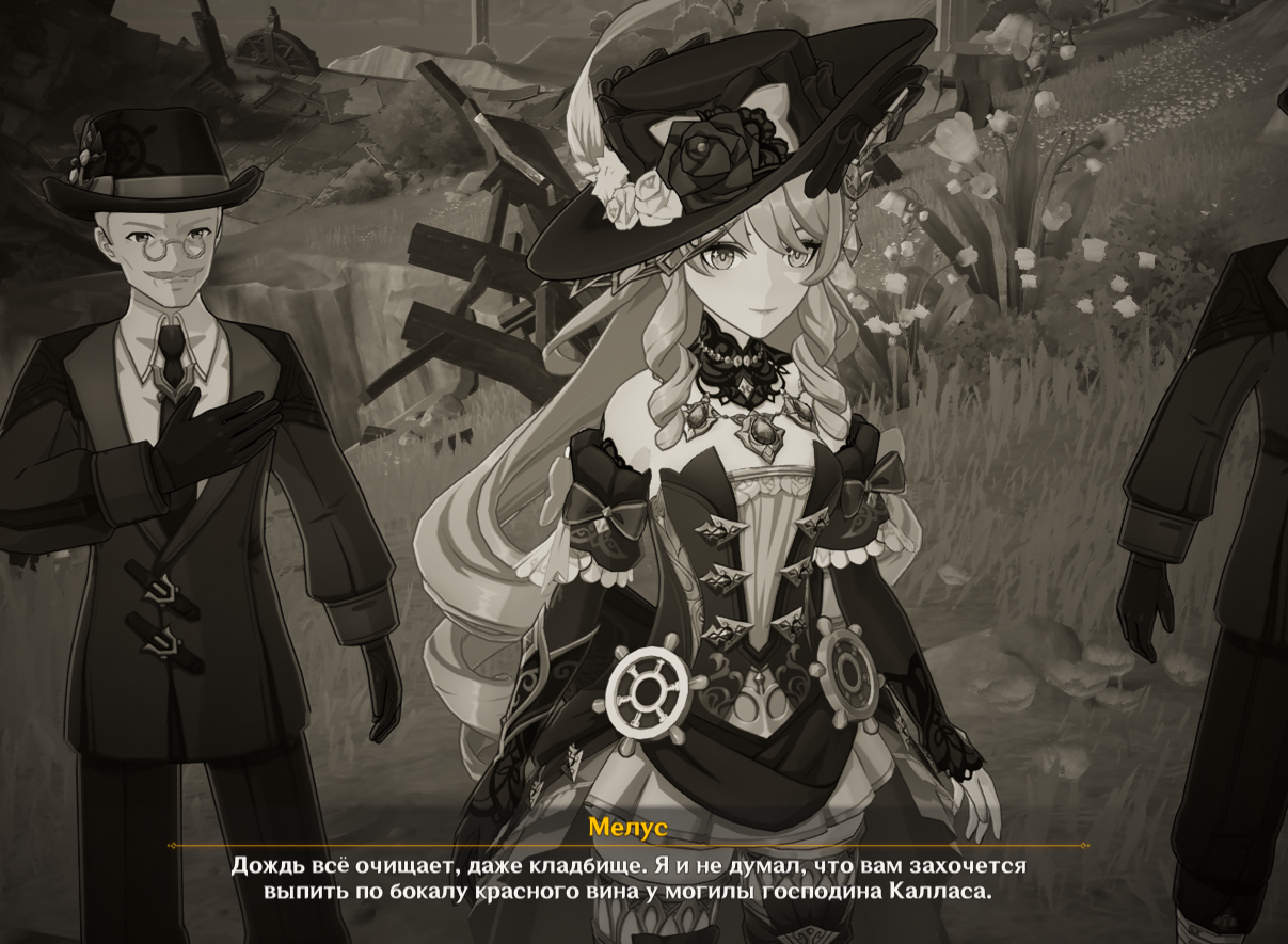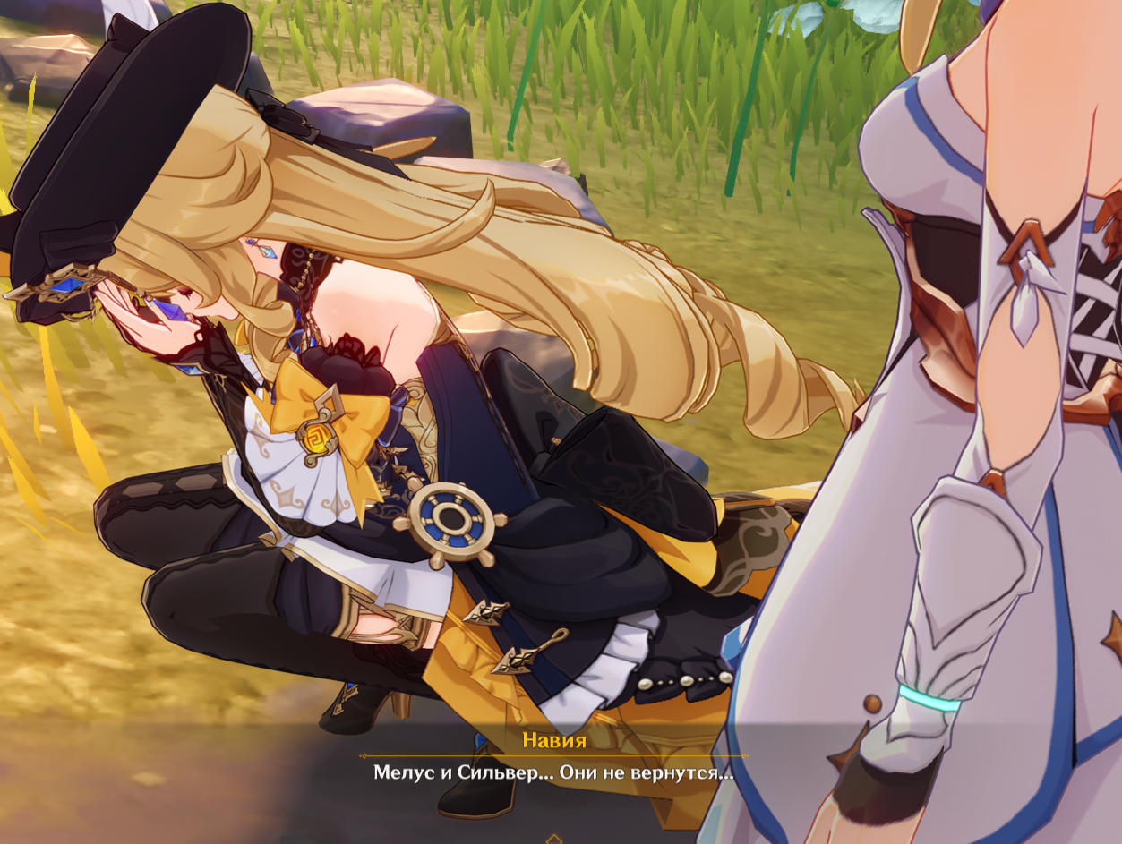 Эхх, а они мне даже понравились, как второстепенные шохи-подпевалы. Прикольные персонажи. Жаль их конечно, бедолаг, но что уж поделать. Вообще у Навии в игре я смотрю очень драматичная история. Ну прям беда за бедой же... Как-то на теорию натыкался на ютубе, что крио глаз бога выдаётся тем, кто в жизни испытывает страдания или переживания. Ну вот у Навии этих страданий на пару снежных глаз точно бы хватило.