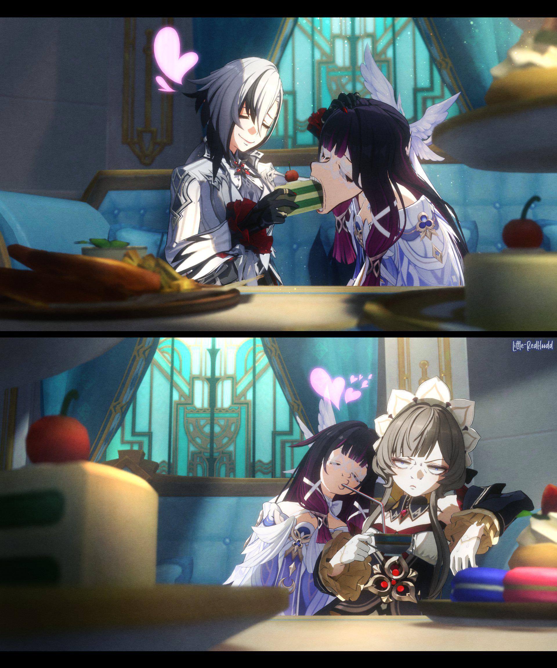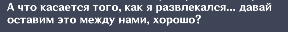 В одном из её анекдотов ГГ бухает алкашку. В открытую, без недомолвок и всего такого, без двойного дна, соков и безалкогольного молока. Венти и Роза нахуярили Люмин в Богини... (что было потом - история умалчивает, но я додумываю в меру своей испорченности сам.)
