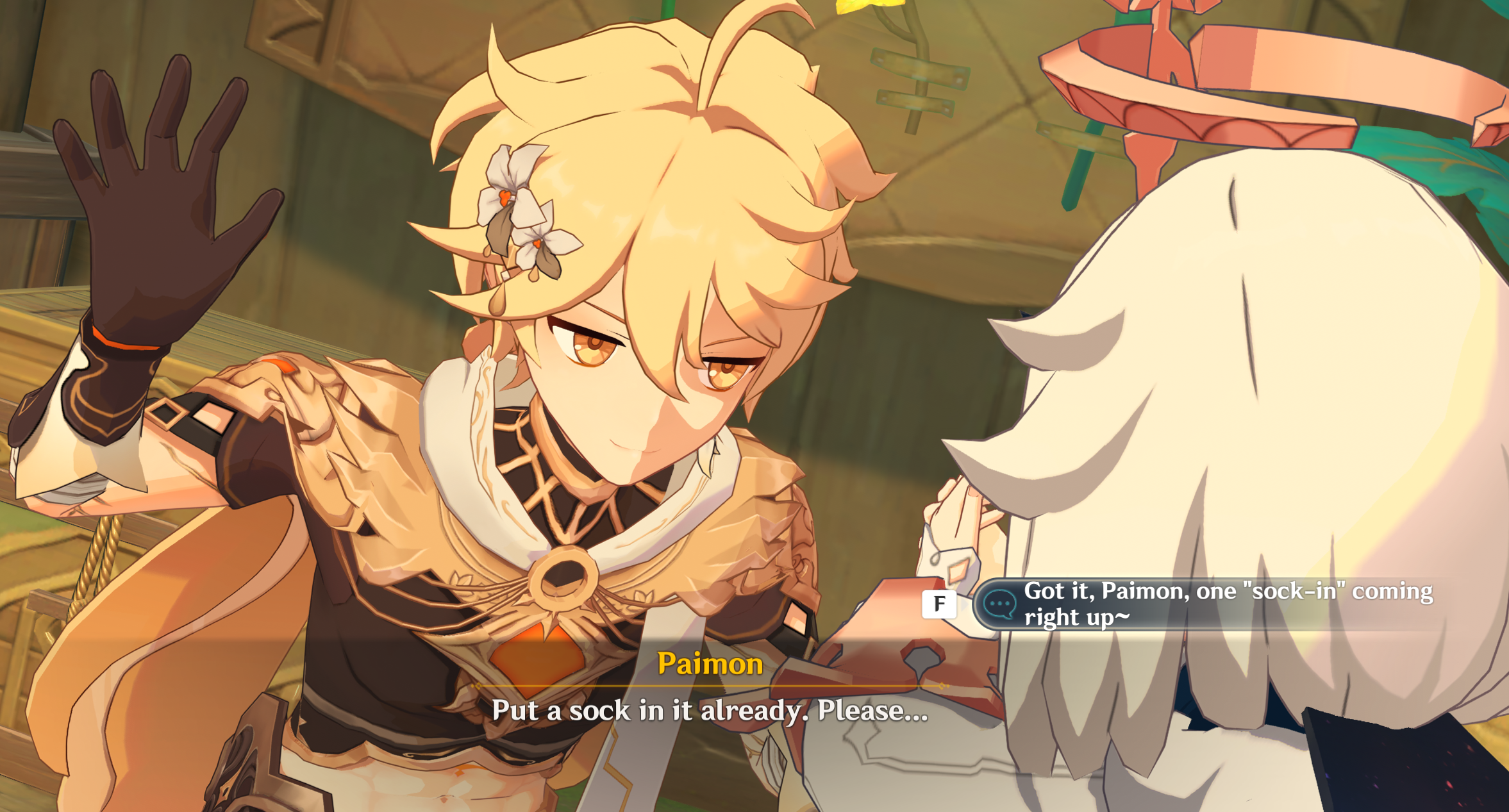 >>5938854 Она просто после прорыва фальшивого неба оформила себе небольшое путешествие за границы Тейвата, и увидела, что у другого путешественника местная летающая консерва выглядит поприличнее, ещё и в бою дерётся. Пришлось экстренно поднимать свои навыки, чтобы тейватский табибита не догадался и не попробовал сделать себе новую Паймон.