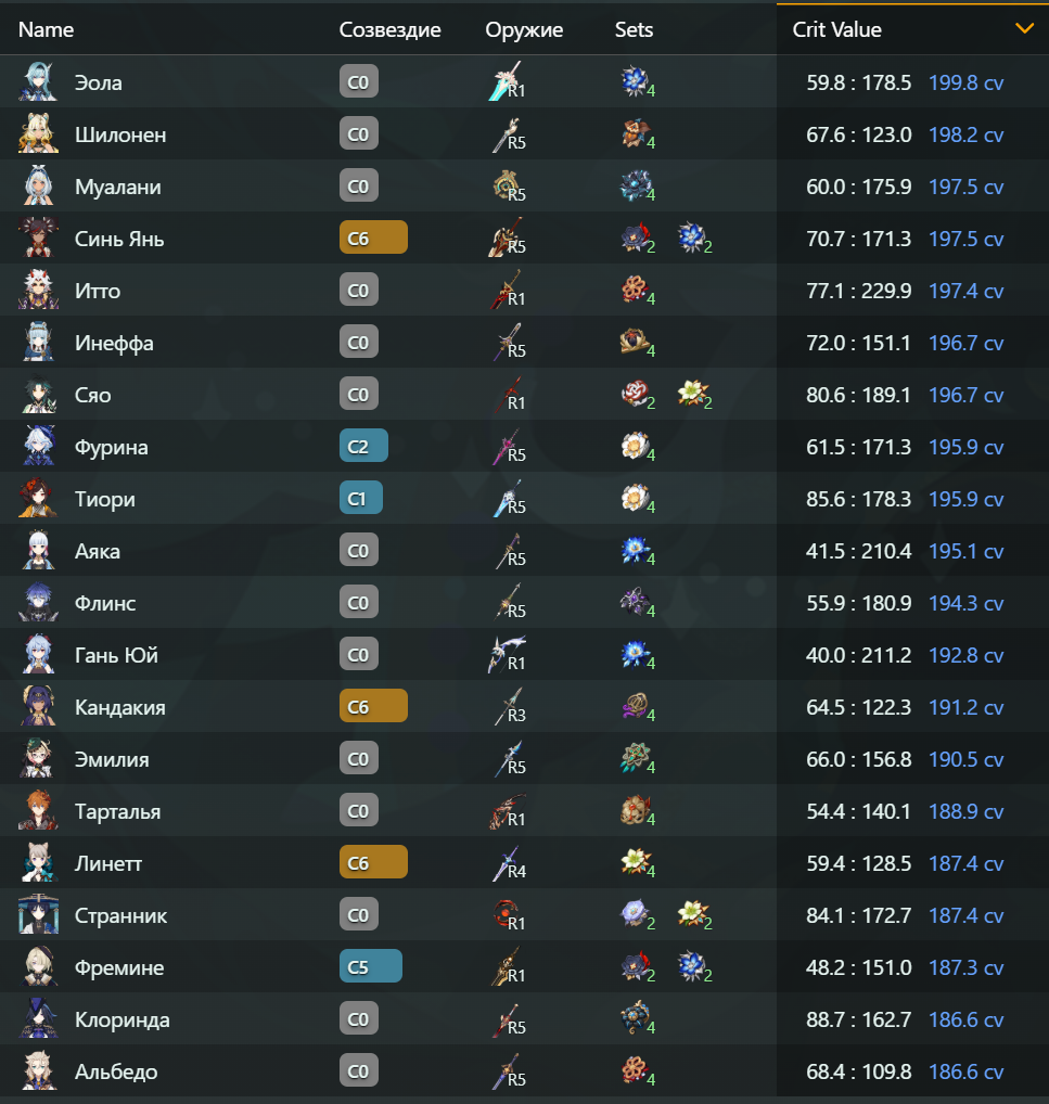 Делаю себе акич минмаксера по вайфу-фактору с таким списком персонажей. Все остальные чемпики из четвёрок и стандарт-лег сидят на 20 лвле. Все остальные лимитки скипаются. Четвёрку из баннера крутить только ради с0 Кандакии, без гаранта, до 30 круток в счётчике. Оружейный баннер не крутится, легендарное оружие из стандарта и любое другое оружие не по списку сидит на 1 лвле, Эпос тоже. Сеты фармятся по мере необходимости, наличия персонажей и их возможности фармить данжи. Все сэкономленные гемы и ресурсы ждут следующих вайфушек.