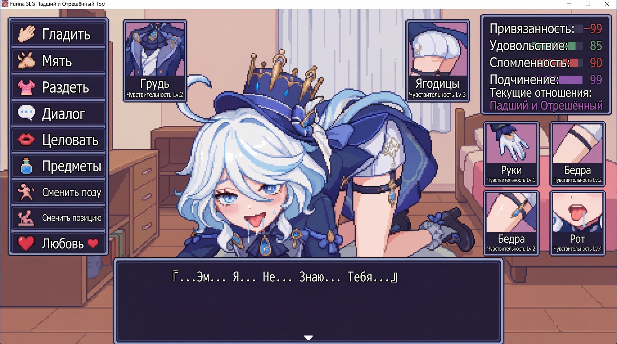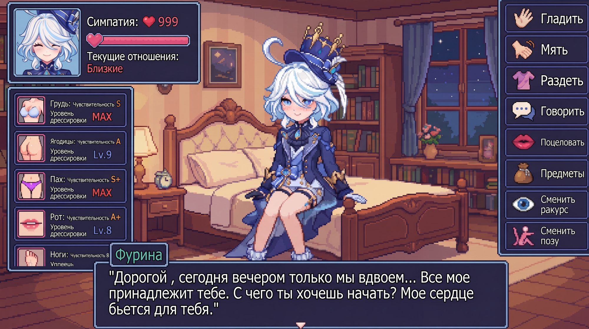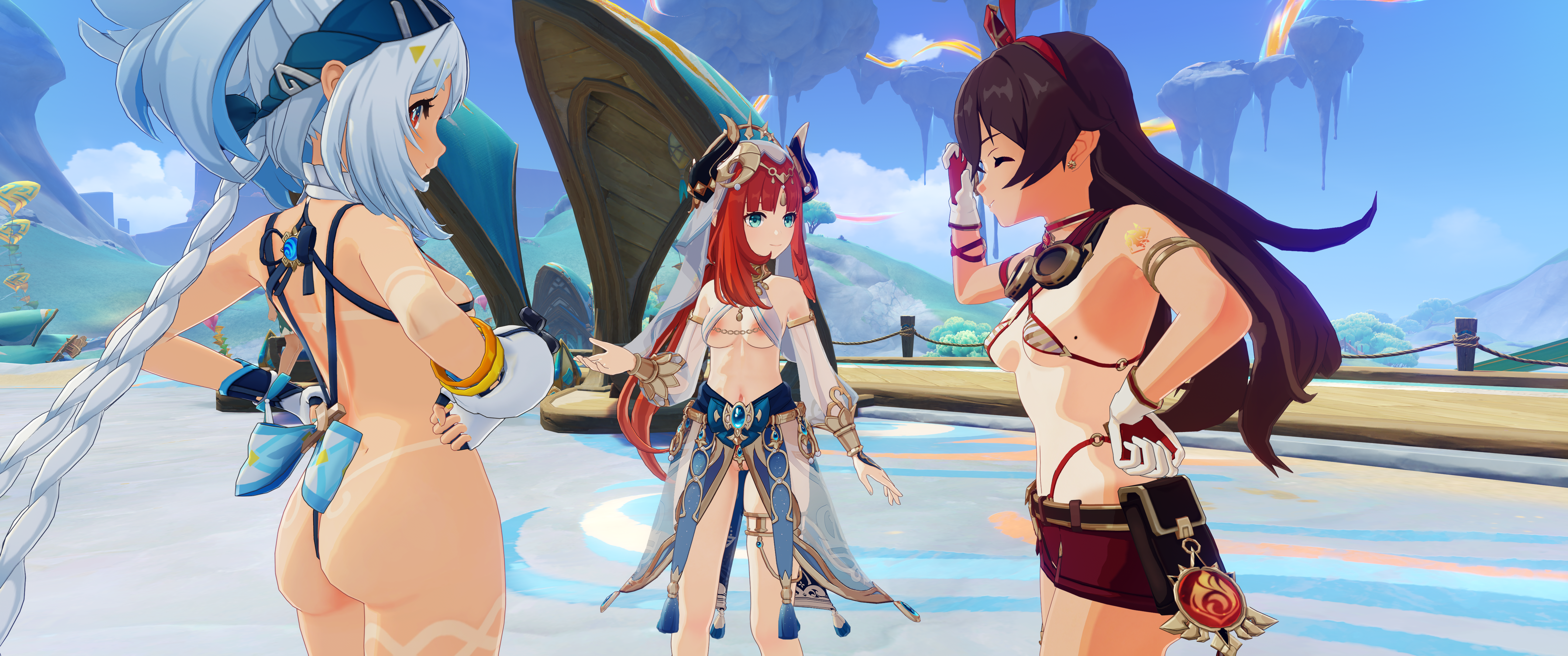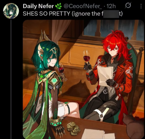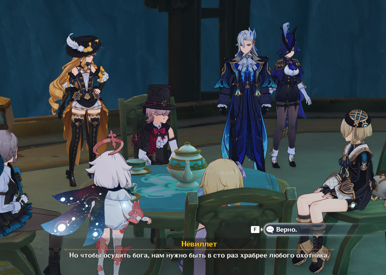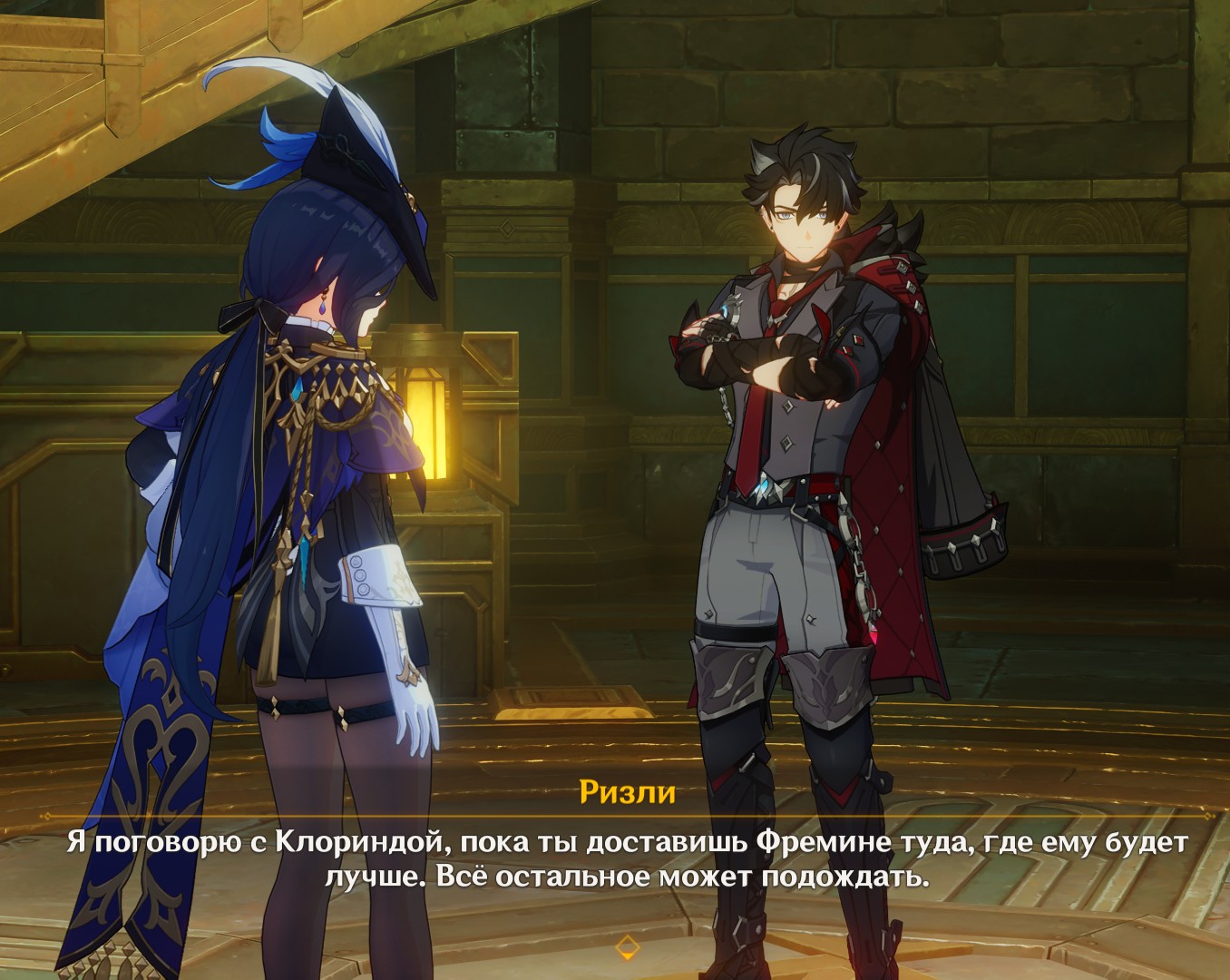 Я выкрутил Ризли, потому что он выглядел круто, как Рэмбо или какой-либо другой нормальный мужицкий мужик. Потом я выкрутил Навию, потому что она капитальная красавица с медовой писей и в целом хорошая женщина. Клоринду я выкрутил из-за колготок и груди, а ещё, потому что она подруга Ризли и Навии. Это мои любимые персонажи Фонтейна, люблю их!