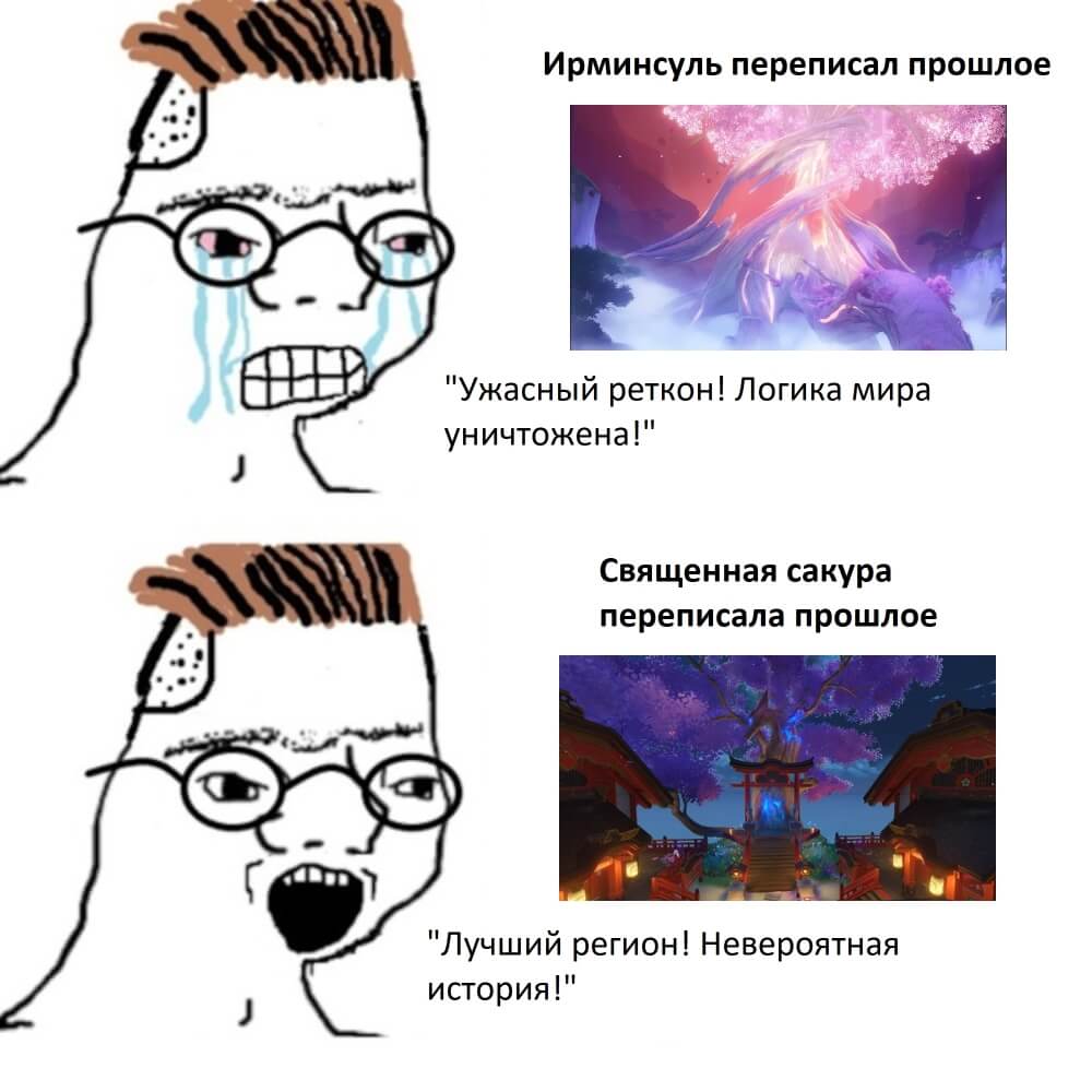 А что собственно плохого в том, чтобы любить Геншин, но при этом хейтить какие-то его аспекты? Сюжетку в частности. Да, мне нравятся персонажи, мне нравится атмосфера, мне нравится открытый мир и геймплей в нём, мне много чего нравится. Но мне не нравится, что китаец кормит меня сюжетным говном и не даёт возможность пропускать самые унылые моменты. Заместо этого делает мозоль на моём указательном пальце ещё больше. Я чё бля, обязан любить этот гениальный высер, рождённый в воспалённой от рака голове графоманского китайца?
