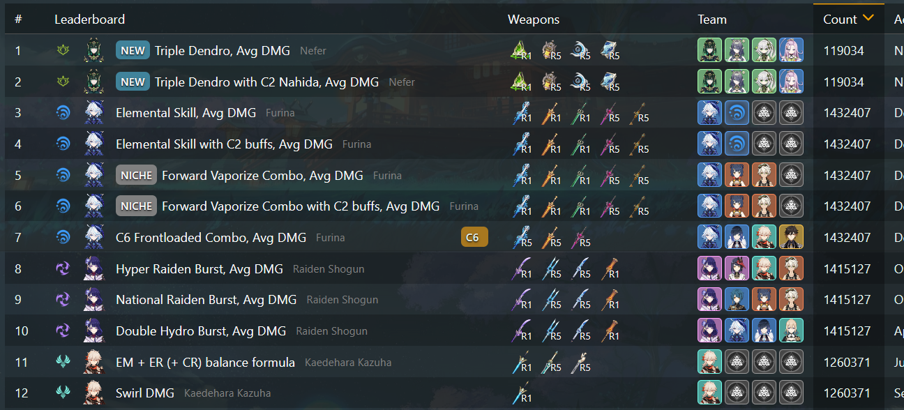 На самом деле, четверки - это или 1.0 гигачады на которых стоит весь геншин и пару-тройку новых. Например, Шеврез, тут без вариантов, сильнейшая четверка, ведь создает абсолютно новую и весьма крутую пачку перегрузки, причем онфилдеры меняются, но краеугольный камень, что делает пачку рабочей - это таки Шеврез. Потом, Камин, не метовый, но передамаживает многих пятерок, ну и в отличии от всяких Кандакий у него есть конкретная пачка, что редкость для четверок. Ну и вот Айно у которой тоже есть своя пачка и своя роль, хотя дамагом не отличается, но пассивка на лунный бонус меняет все. Остальные что-то так себе, не могу сказать, что хотя бы раз пригодилась гном тренер, эмо бой, Качина, ну и всякие четверки с Иназумы, Сумеру или Фонтейна.
