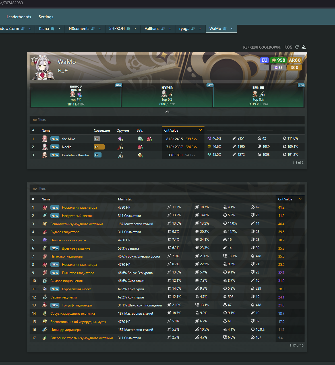 Грустно и иронично вжушкаю с того, что топовый чемпик по CV у меня - Кирилл, арты на которого я собрал литералли за неделю фарма. А Часка, обсидиан для которой фармился год, всё равно хуже. Понятно конечно, что дырка на 36, пятый надриск и театр на фул закрыты. Но всё равно.