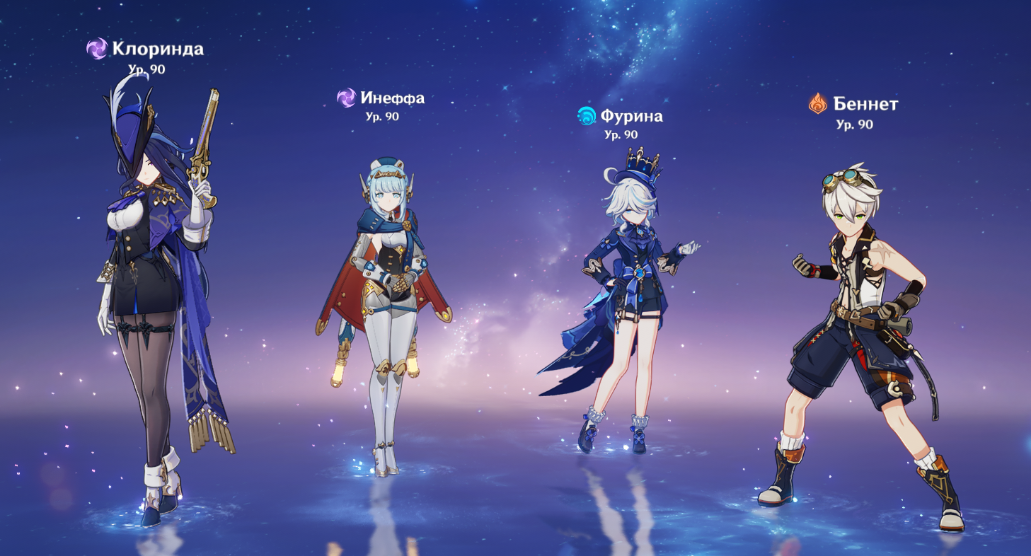 Вообще четверки как выше человек сказал - или релизная пятерка, или специализированные аля Мика, Кука, Сара, Фарузан и тд. В Фонтейне мощных четверок не выходило, в Натлане только Гном, и то он слабее во всех отношениях Бенета.