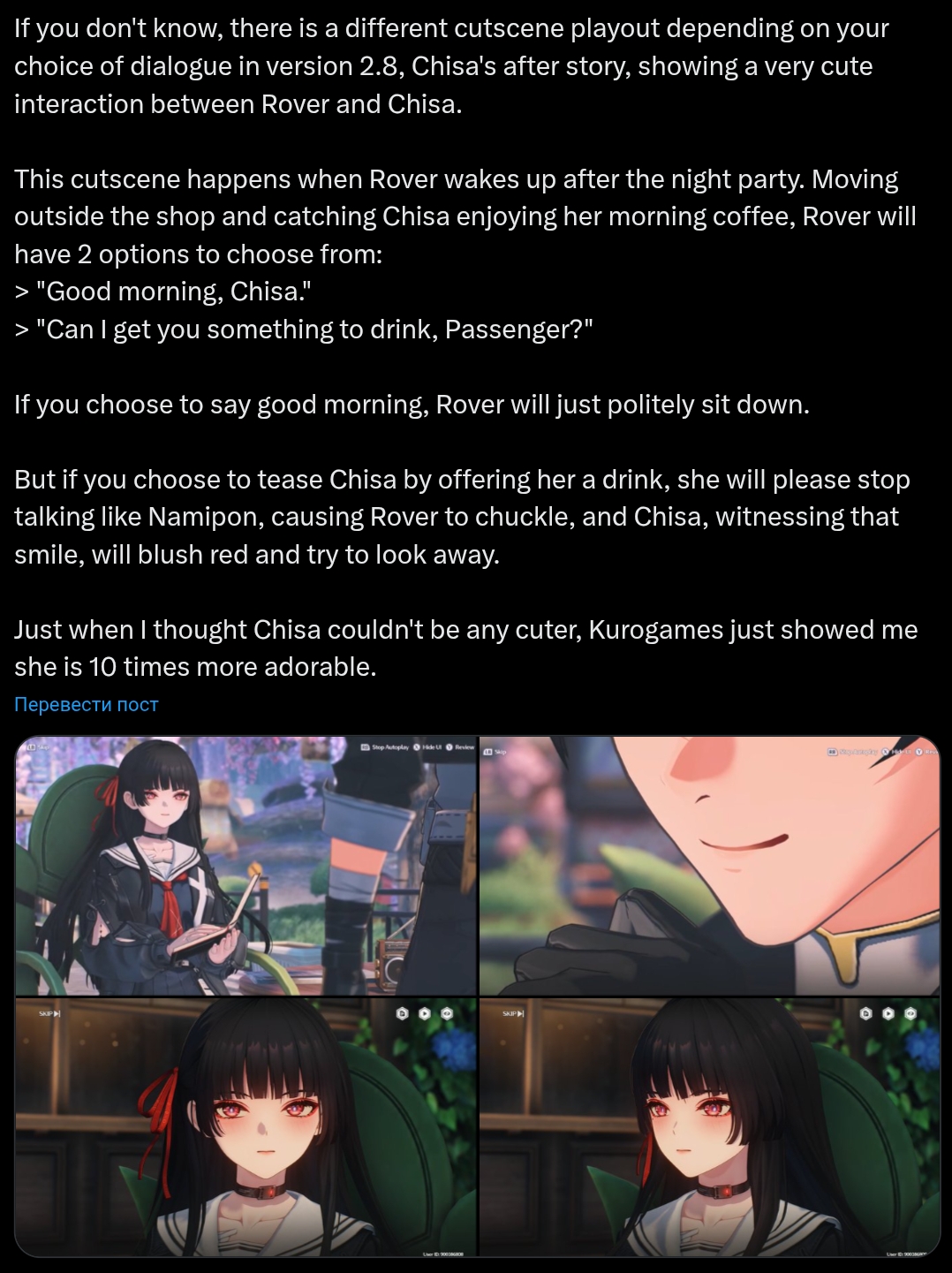 >>5945511 А еще ведь есть диалог с Кантареллой в конце 2.2 тоже с некоторыми вариантами забавными. Да и в целом, если попробовать вспомнить, должно быть больше такого.