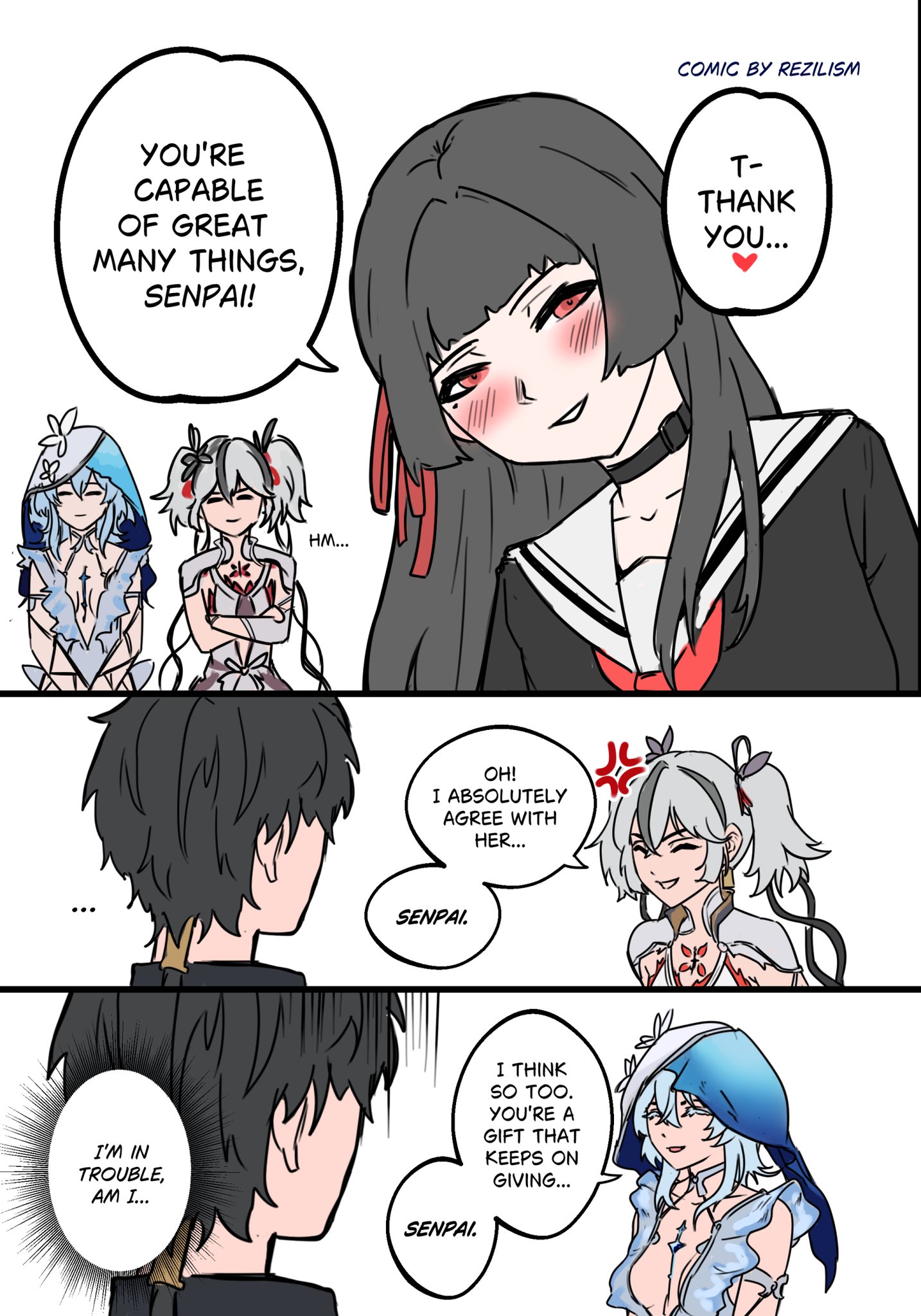 Понравилось что много времени во второй половине уделили просто болтовне и фансервису. Вот прям как надо полагается сделали, проиграл когда пришла камелька. Такой и должен быть сюжет в аниме игре, легкий,(и банальный от части) ненапряжный и красивый. Реально НАСРАНО только реюзом босса из септимонта (надо было реюзать с реколором модельки, тогда бы не так плохо было) Ну и мала опять же, ну а че тут поделать, затерпим. У других такого и впринципе нет. На этот раз скринов сделал больше чем когда либо
