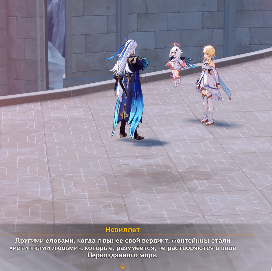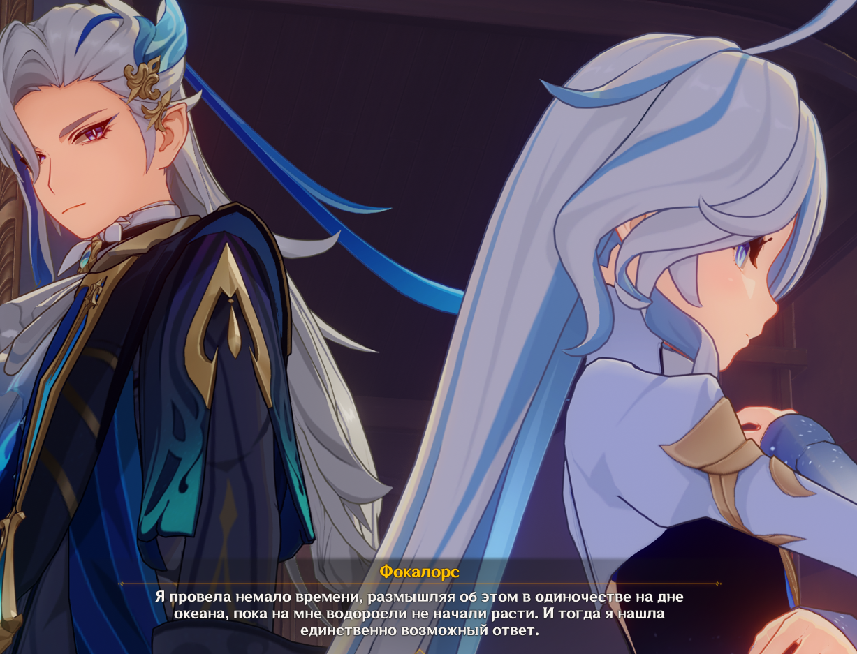 > основная проблема - фонтейнцы не являлись людьми по настоящему. И их массовое растворение в первозданном море было лишь вопросом времени. Я это понял. Просто именно Кит там фигурировал как палач пророчества. Это прямые слова Нёвиллета. А так да, я понял суть идеи, что вся проблема от первозданного моря в крови. Но опять же, не вижу смысла соблюдения картинок на камнях: копишь гаввах через суд=>разрушаешь гидро престо=>отдаёшь силу гидро дракону=>прокаченный гидро дракон фиксит океанид-людей. И я даже не уверен, что для этого требовалось обязательная смерть Фокалорс.