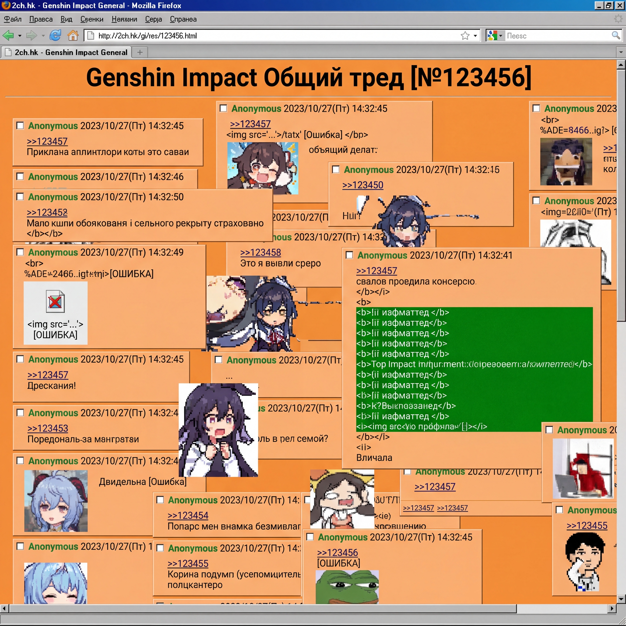 >>5949189 >>5949221 Раз это твой пост, то тебе тогда и отвечу. Вообще стоит понимать, что Фурина - подневольная личность. И скорее не в плане административного ресурса, а в плане того, что ей богиня по мозгам проехалась. У неё же установка в голове стоит на протяжении 500 лет: играй роль архонта, не трепись, не выёбывайся. Она родилась без памяти но уже со знанием пророчества а голове. А то, что оно на неё давило каждый день и она так сильно загонялась, говорит лишь о том, что её промыла богиня воды. Также сделана она была нестабильной эмоциональной писюхой, а отыгрывала роль архонта она только так, как сама это понимает. Так что и институту, как ты помнишь, прямо сказать ничего не могла. Ведь не по архонтски это - взваливать божественные проблемы на людишек.