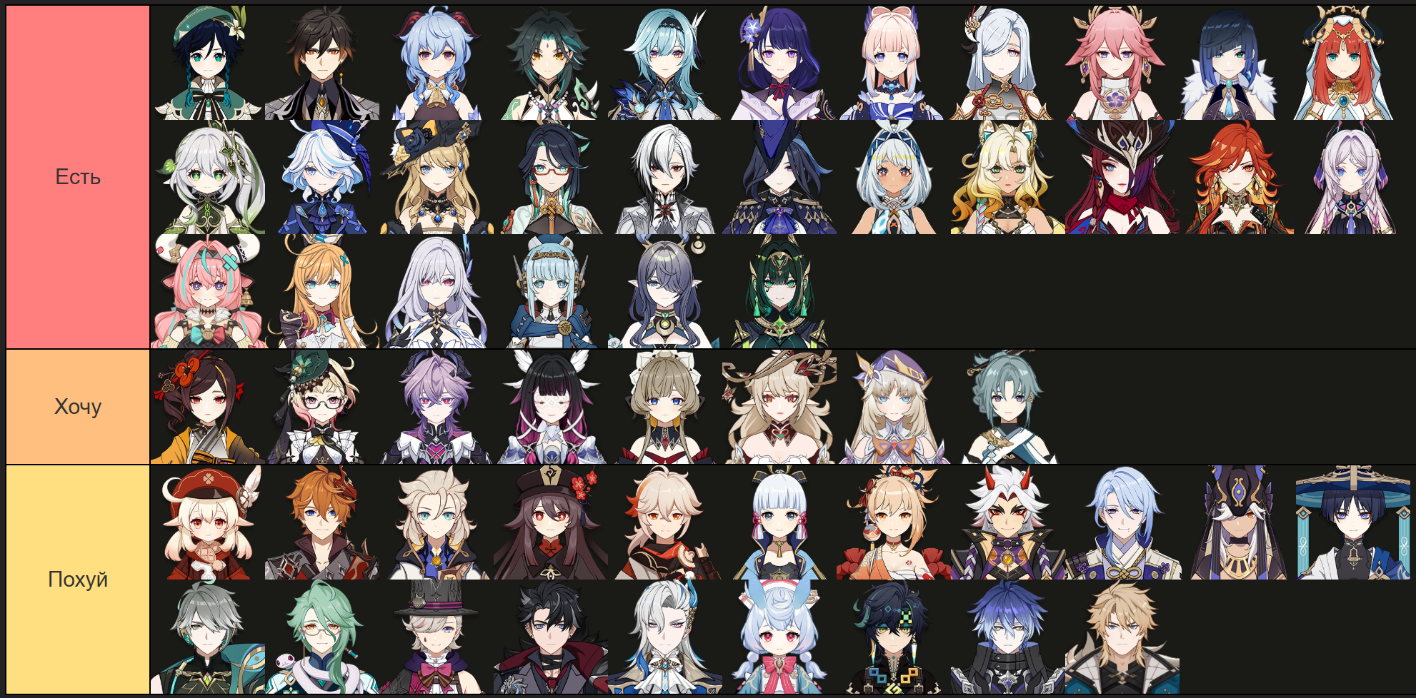 Круток нихуя гемов нихуя персонажей дохуя. Как коупить, что я буду всю жизнь страдать с каловыми персонажами, которых выбил в 1.0-2.4, в то время как все метапаймоны с персонажами из нод края и натлана ебашат х3 от моего дпс просто по факту существования?
