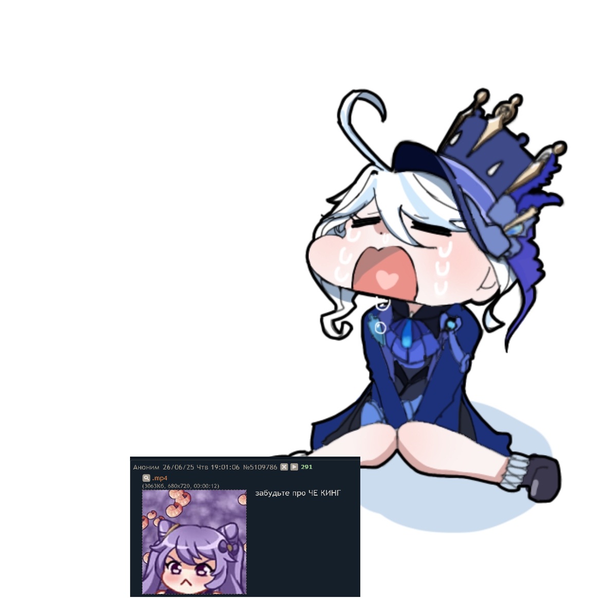 >>5948898 >копиум Это реальный баннер, когда в тот раз ляо натолкал имбы в баннер варесе и мусора к шилонен, только вот тогда Вареса шла после Мявуики с Ситлали и после Фурины, так что многие засоленные крутки были уже распечатаны Баннер Венти/Дурин с ягодой и так уже очень сильный, тут с него многие потекли, а шилонен уже у многих есть, так что на месте ляо я бы натолкал к Венти/Дурину мусора, а Варесе дал опять топовых 4-к, ради которых придётся занести >шеврез к дурину шеврез тогда будет и у венти, имхо синергирует с ним так же плохо, как и с шилонен, но шилонен и шеврёз всё же более похожи друг на друга. Ну и иансан опять очень хорошо к ним войдёт, а это очень сильная 4-ка А к венти/дурину логичнее засунуть фишлю/разора, например.
