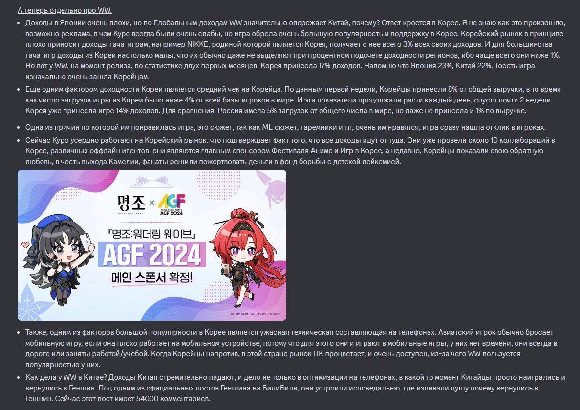 >>5953866 Зюзя это отличный пример того самого мема про инвестировал в говно. Вроде на бумаге выглядело все очень перспективно, новый релиз от успешного разработчика, ну что может пойти не так. Вува же наоборот крайне шатко выглядела со слабым 1.0 и сильной хейт-компанией против нее. Умные люди конечно видели сразу заметили огромную разницу в потенциале двух игр, где некстген проект, а где крайне слабая технически игра с очень ограниченным геймплеем, но среди ляоботов таких не много, они обычно зависимы от мнения протыков и своего не имеют. С геншином вообще конечно история забавная, Ляо просто сам решил задушить проет так как видит куда движется рынок и что он на нем очень скоро будет в позиции отстающего. Студия которая в свое время хайпанула не революции в мобильном рынке в итоге стала топтаться на месте, пока другие компании своершенствовали новые технологии. В итоге геншин сейчас уже находится на позиции хонкая 3, а ляо все силы бросил на свою гташку. Вот так вот вува внезапно всех переиграла, потому что для Куро до этого живших на пгре с доходом в 1кк даже вува с доходами в 20кк буквально увеличила прибыль студии в 20 раз. Поэтому было решено всеми силами вливаться в развитие проекта.