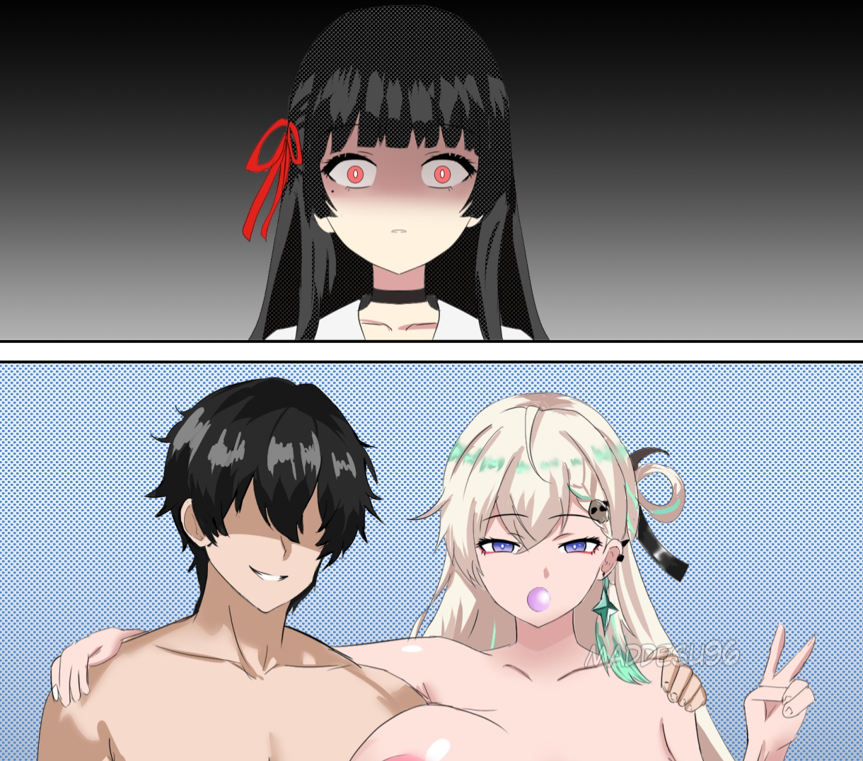 Если чуть-чуть сделать глаза сщуренными, добавить красноты на щеки, приоткрыть ротик чуть-чуть и добавить облачка как будто пар, и чуть-чуть изменить положение правой руке(на которой метка), то будет казаться будто она рукоблудит.