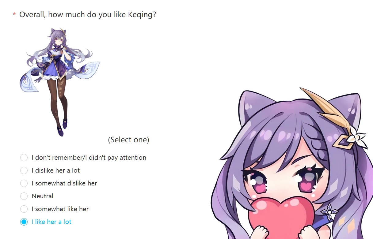 Насколько в целом вы оцениваете необходимость отправить персонажа Кэ Цин на вжушкодральню по шкале от 0 до 10, где 0 не надо отправлять вовсе, 10 обязательно отправить навсегда.