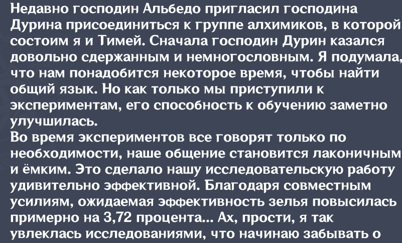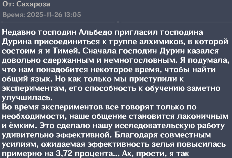 Прикиньте, я забыл кто такой Аль-Хайтам. Встречаю его тут в квесте Сайно и вот хоть убейте, не могу вспомнить, что он вообще делал в сюжетке сумеру. Там же был квест про Нахиду, которую никто не воспринимает как нового архонта, день сурка, больная подруга Нилу и Дашки, Дайнслейф тоже вроде был. А откуда этот чел взялся я вообще хз. С ним еще постоянно блондин какой-то трется, вообще хз кто это такой. Пиздец, пора таблетки пить