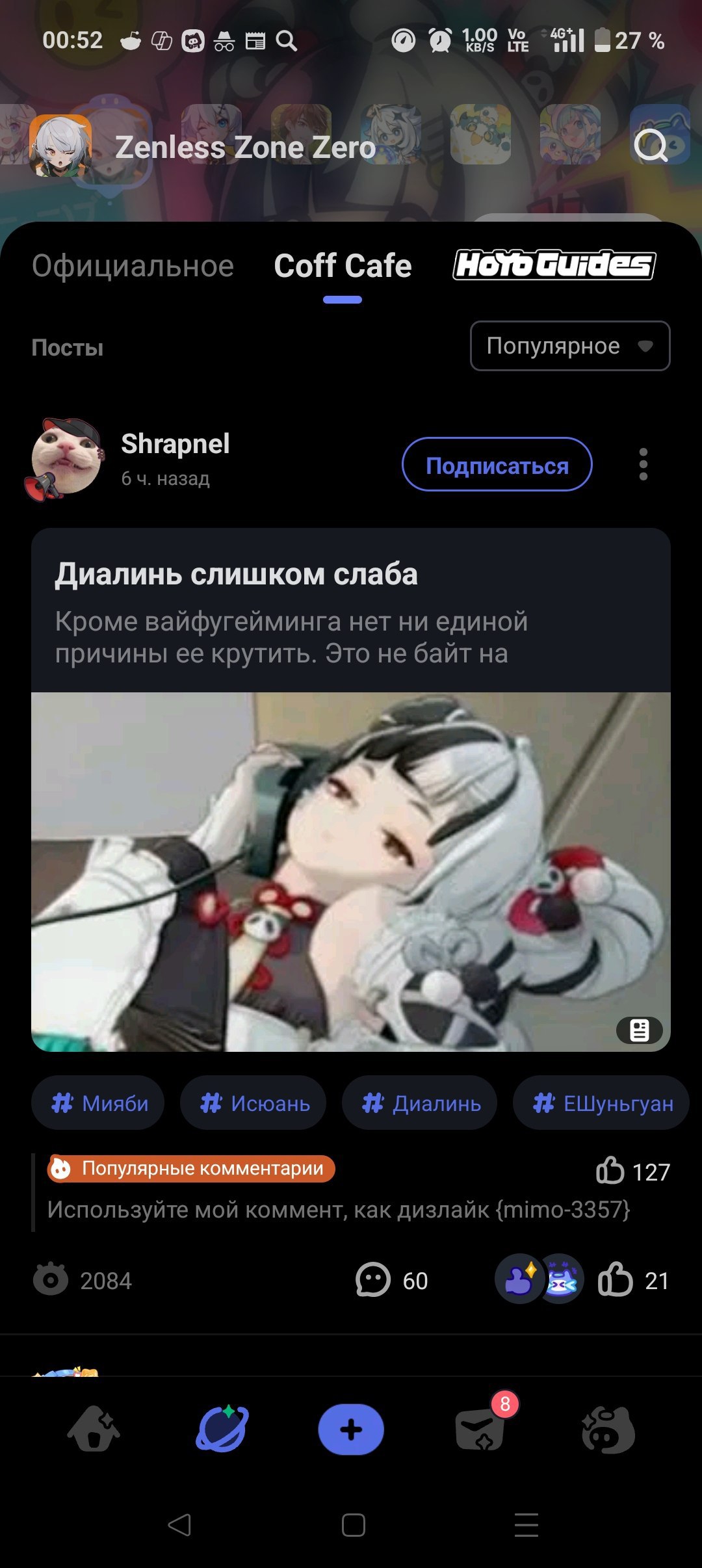че за копиум по треду разметали я с релиза ни 1 сигны не крутил и всегда на выходе чара она дает нихуя а как тока убирают удобных противников и баффы стандартные 5 тыщ в да 40% контроля аномалий на вивиан которые ничего не делали на релизе передают привет