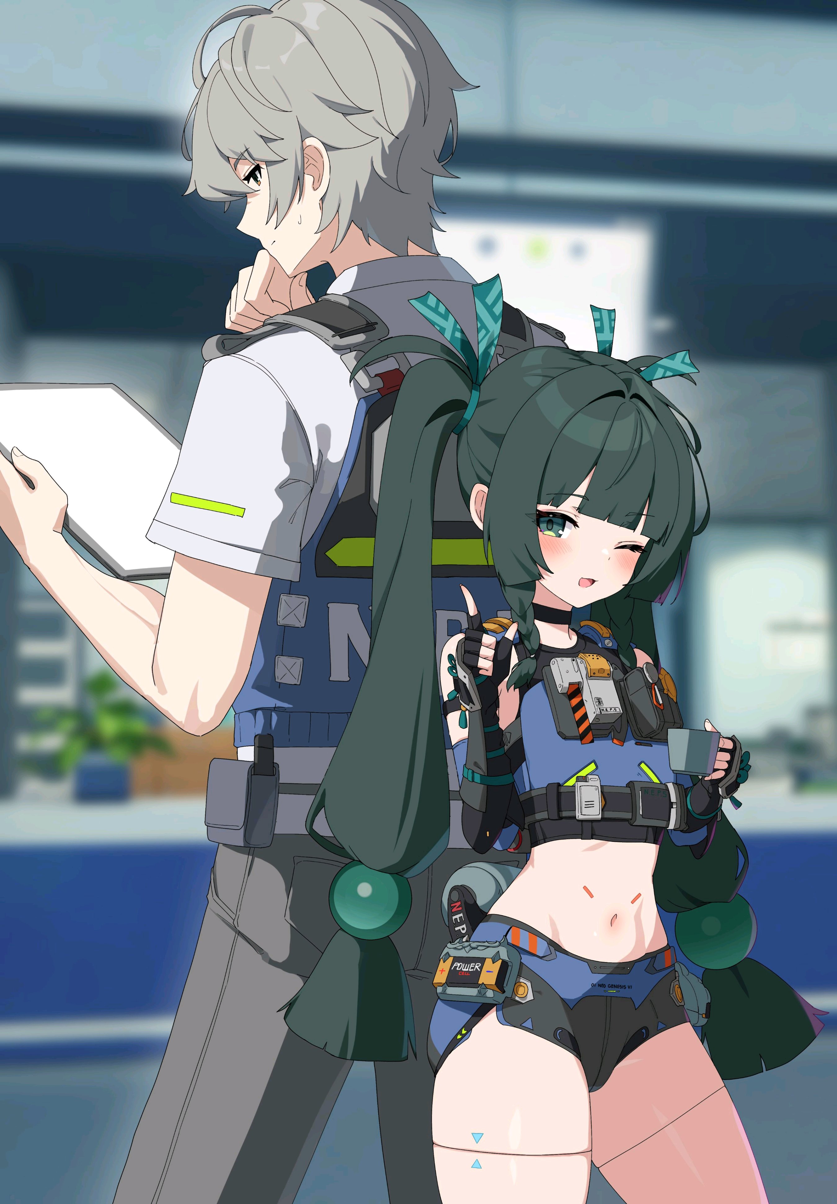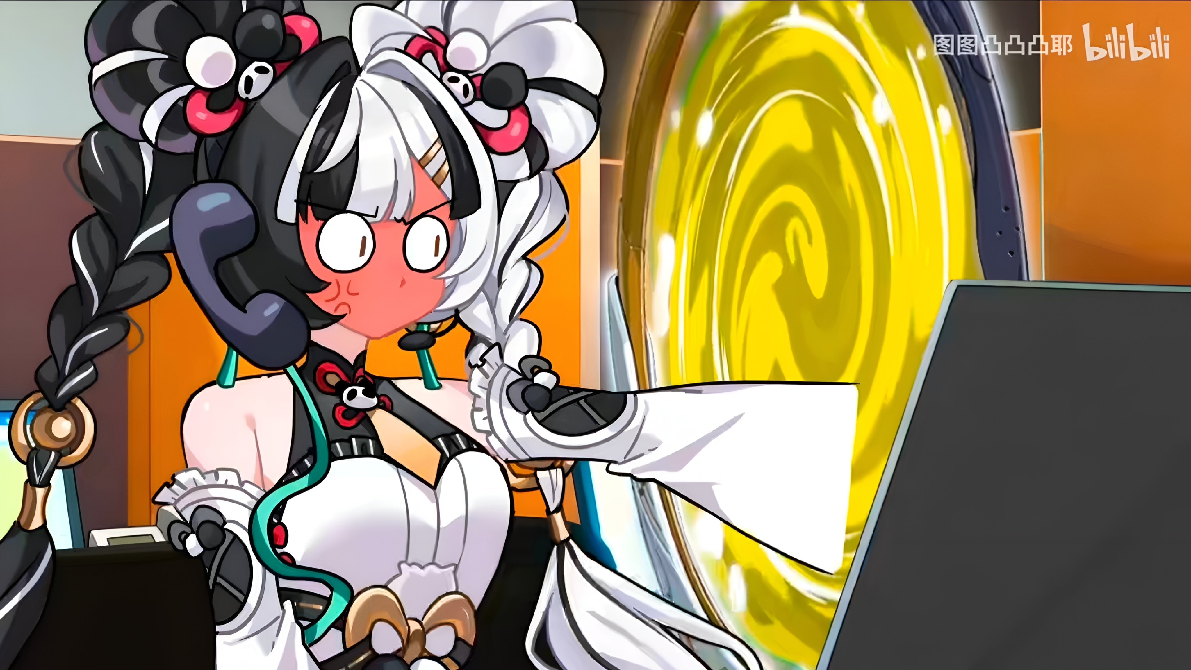 В принципе такие талоны с QR кодами из обручей-порталов, рядом символика Krap-Pay (плохо стилизованная), рядом банкомати для пополнения, и довольная героиня. Правда ничего на фон толком не придумывается, да и что отображать в порталах тоже не понятно.