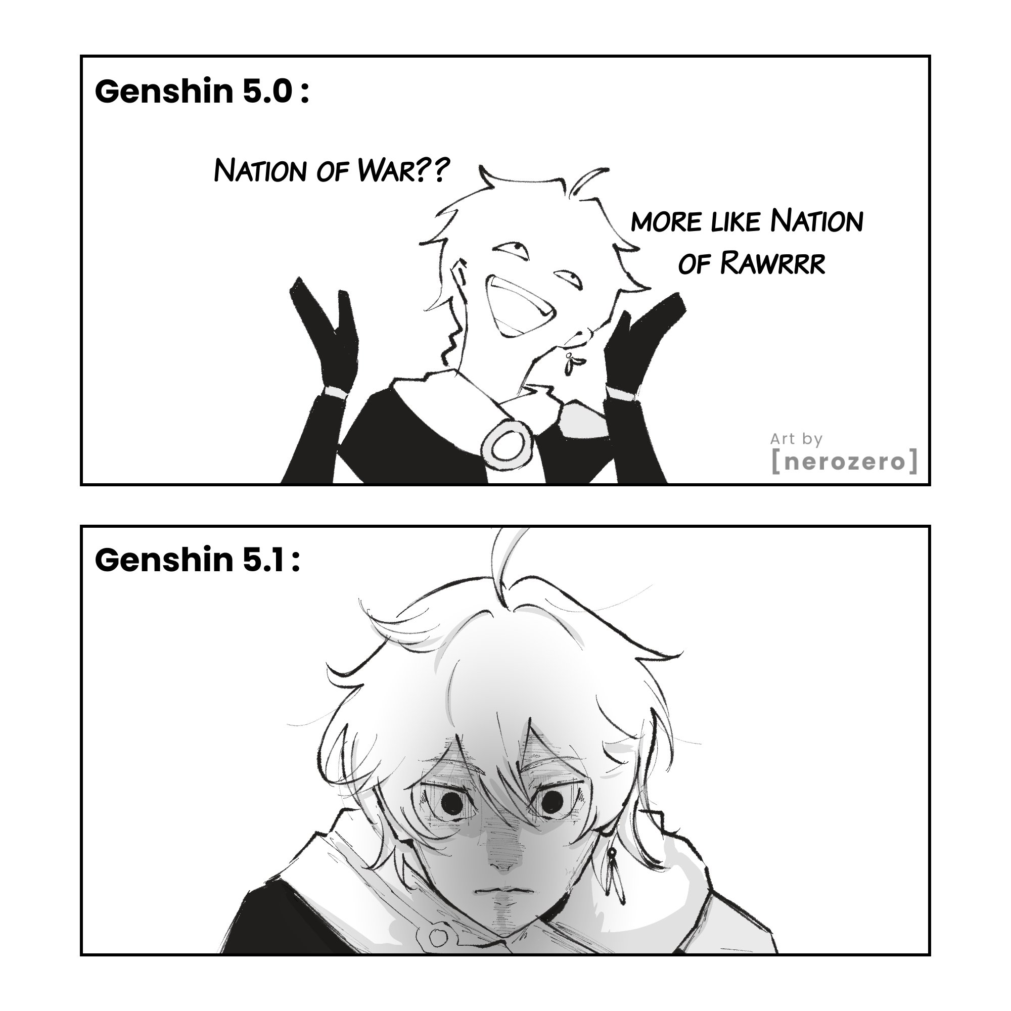 Сюжет Натлана это реально тот момент, когда Геншин перестал был детской игрой Ляо неиронично доказал, что можно даже в регионе с покемонами и прочими зверушками показать все ужасы войны