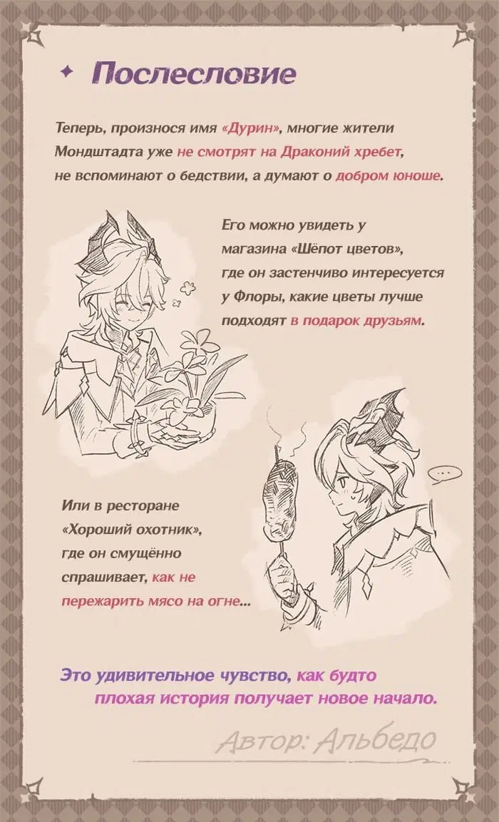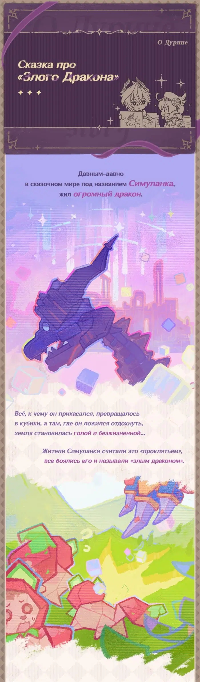 >>5966363 Потому что подарок с рожками — его тезка из сказочной страны Симуланки с прошлогоднего летнего ивента, маленький бумажный дракончик размером с кошку Уйолу. Альбедо дал ему человеческое тело и вписал в мир, чтобы тот дохлодракон с хребта не воскрес, так как место в мироздании занято.